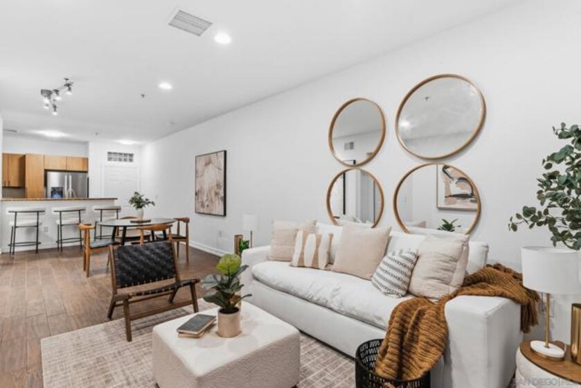 Welcome to this highly sought-after residence offering an impressive 1,100 sq ft of private outdoor space. Designed for seamless indoor–outdoor living, the home opens effortlessly to an expansive yard, perfect for entertaining or unwinding in a tranquil setting. The front entry welcomes you through a private courtyard framed by lush greenery and tranquil water features, creating a serene arrival experience. Elevators located just steps away provide direct access to your parking spaces in the upper garage, blending everyday convenience with refined urban living. Enjoy the rare comfort and privacy of a single-family-home feel in the heart of the city. With a Walk Score of over 90, Union Square is located across the street from San Diego City College with convenient access to major freeways: 163, 5, and 94. Adding to the neighborhood’s safety and peace of mind, the San Diego Police Department (SDPD) headquarters is also located directly across the street. Union Two blocks away a 4.1 acre East Village Green park is under construction and a wonderful addition to the neighborhood! The development will include a community center, children’s park, off-leash dog areas, cafés, plazas, multiple lawn areas, a performance pavilion and underground parking. Union Square Condominiums deliver exceptional value with below-average HOA fees. Amenities include a fitness center, pool, sauna, clubhouse with a pool table, and courtyards with BBQs. The HOA also covers key utilities such as water and trash, adding even more value for homeowners. An on-site property manager ensures smooth day-to-day operations, while multiple communal EV charging stations make powering your electric vehicle easy.