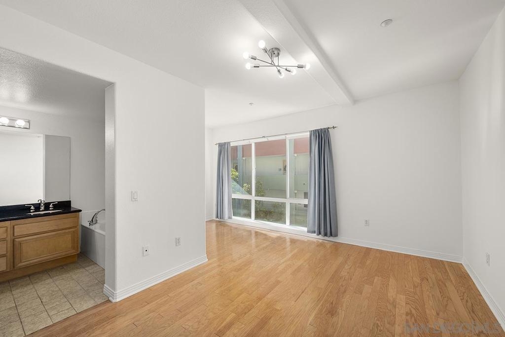 Village Walk #508 is a rare 1-bedroom plus den (optional second bedroom/office/retreat) that offers over 1,200 square feet of well-designed living space in the heart of Little Italy, one of Downtown San Diego’s most vibrant and walkable neighborhoods. The home features an open-concept layout with a spacious living area, hardwood floors, fresh interior paint, and a private balcony capturing the energy of city living. The kitchen includes stainless appliances, granite countertops, recessed lighting, a pantry, and ample storage. The primary bedroom overlooks the interior courtyard and offers a peaceful retreat with a spacious walk-in closet. The bathroom is complete with a dual vanity, soaking tub, and separate step-in shower. Additional highlights include arched doorways, in-unit laundry, very convenient elevator access, a storage locker, and a secured parking space. An exceptional offering in Little Italy, surrounded by top-tier dining, the waterfront, and the energy that defines Downtown San Diego living. Village Walk is a vibrant mid-rise community ideally situated in the heart of Little Italy, just steps from an exceptional collection of shops, cafés, art galleries, and over 70 award-winning restaurants and patio dining destinations along charming India Street. Little Italy’s walkable streets lead to weekly farmers markets, outdoor plazas, parks, and waterfront access that all offer a true urban-village lifestyle right at your doorstep. Residents enjoy a beautifully designed central courtyard with a tranquil fountain and comfortable seating areas, perfect for relaxing and socializing. Premium community amenities include a fully equipped fitness center, inviting resident clubroom, and secure bike storage in the garage. With its unbeatable location and thoughtfully curated spaces, Village Walk delivers both convenience and community in one of San Diego’s most desirable Downtown neighborhoods.