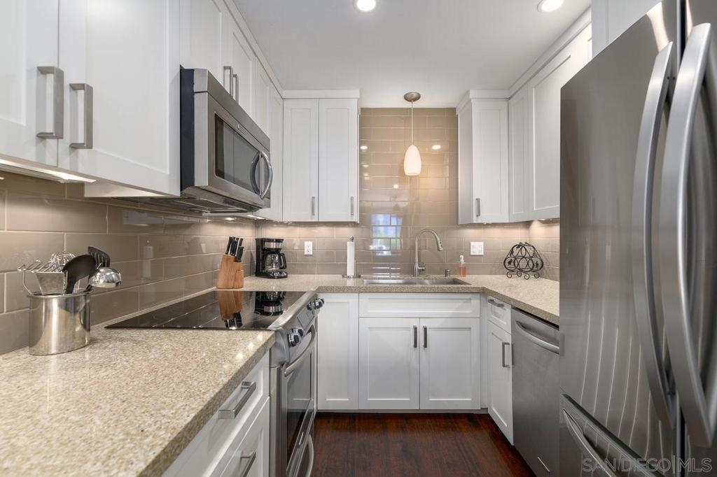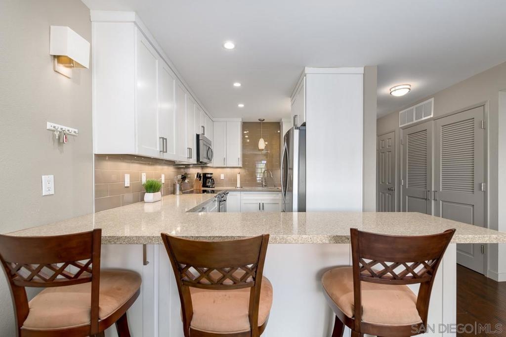 This pristine 2-bedroom, 2-bath top-floor condo in the Cortez Hill neighborhood is in move-in condition with a fully remodeled kitchen and primary bath, upgraded flooring, updated faucets and ceiling fans, and features in-unit laundry, a walk-in closet, balcony, and two underground parking spaces. Come check it out.