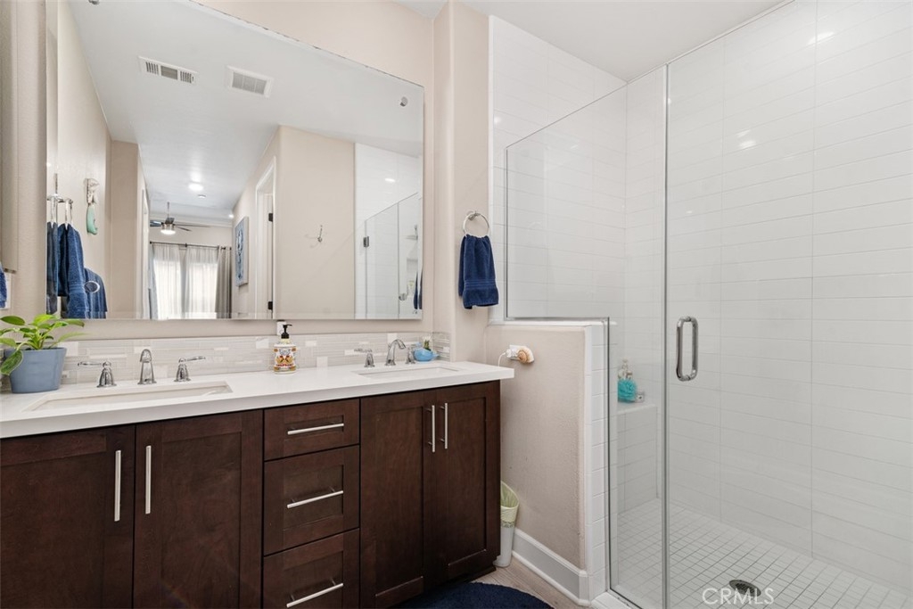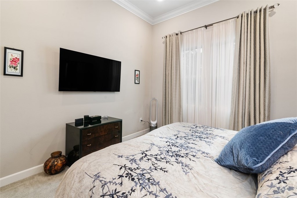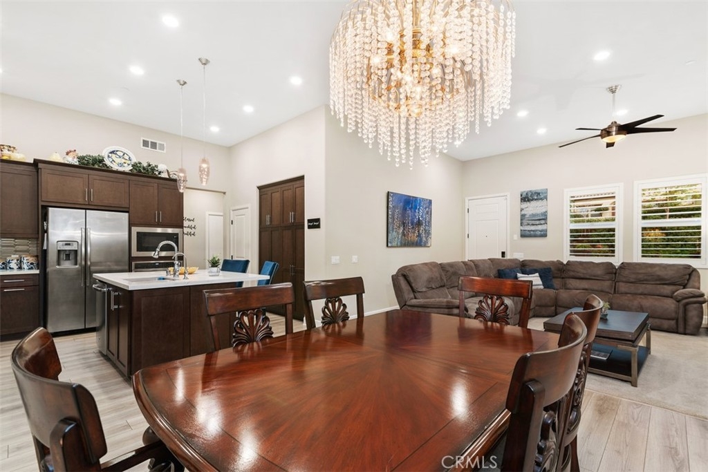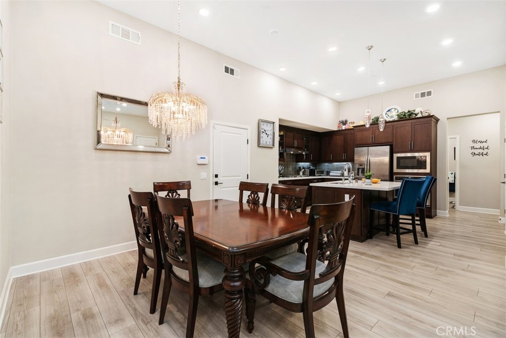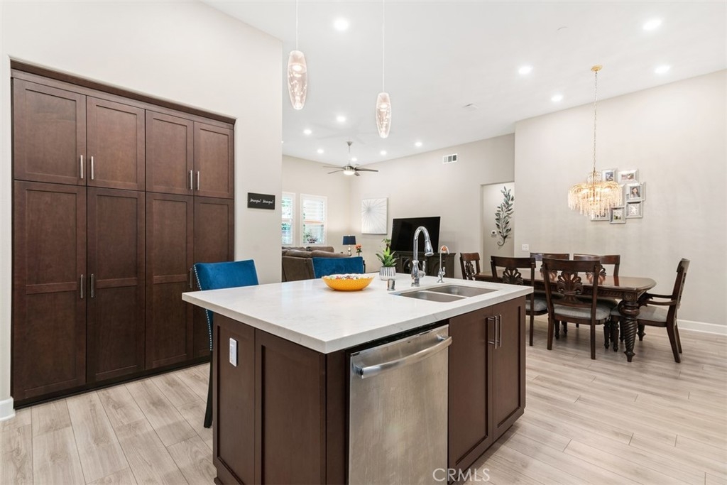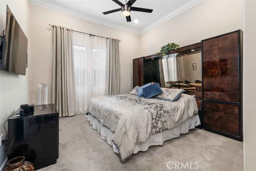 Elegant SINGLE STORY, 3 bedroom, 2 bath townhouse in Avante 55+ gated community. Built in 2018 and is conveniently located in the heart of Del Sur, and within walking distance to Del Sur Town Center. Avante is part of the Del Sur Master Planned Community, which grants homeowners access to 11 pools, trails, numerous parks, dog parks, and year-round neighborhood events. This stunning home has a spacious open floor plan with a modern kitchen and high ceilings (12 feet!). Stainless steel appliances, washer and dryer, quartz counter tops, designer tile backsplashes and a large kitchen island with a built-in dishwasher, disposal, and a reverse osmosis water filtration system. It has luxurious plank flooring, upgraded carpet in the bedrooms and living room, plus you’ll find crown molding in the master, a large custom designed walk-in closet, a tiled shower and double sinks in the en suite master bathroom. This home is also equipped with 8 solar panels, ceiling fans, a security system, smoke and carbon monoxide detectors, and sprinklers. The attached 2 car garage has custom epoxy flooring and a tankless water heater. Enjoy a low maintenance lifestyle while relaxing on the sunny front patio! Avante has a beautiful private clubhouse, heated pool, jacuzzi, gym, fire pit, and 2 barbeques areas. Live comfortably in this spacious and conveniently located gem.