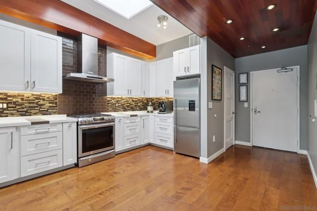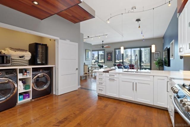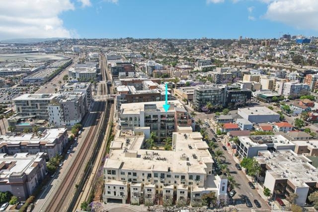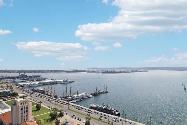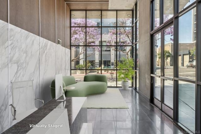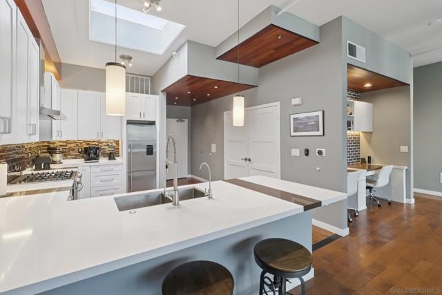 Live above it all in this rarely available penthouse loft at DOMA, one of Little Italy’s most architecturally celebrated buildings. With soaring ceilings, a dramatic skylight, and floor-to-ceiling windows framing panoramic bay and skyline views, this residence captures the essence of chic urban living. The open-concept layout delivers the true loft experience—light-filled, expansive, and effortlessly stylish—yet offers the versatility to be easily reimagined with defined living areas or additional private spaces to suit your lifestyle. The fluid design currently integrates living, dining, kitchen, and office zones, while a spacious private balcony extends the living outdoors with front-row views of San Diego sunsets, fireworks, and sparkling city lights. Modern upgrades enhance both comfort and convenience: a generous walk-in closet, in-unit laundry, Nest thermostat, Lutron blackout shades, reverse osmosis water filtration, built-in Sonos surround sound, and a brand-new HVAC system. Two side-by-side parking spaces with EV charger and a large private storage unit add everyday ease. At DOMA, bold industrial architecture pairs with resort-style amenities including a recently remodeled rooftop deck with sweeping bay views, fitness center, and tranquil courtyard. Just steps to Little Italy’s acclaimed restaurants, cafés, boutiques, and Farmers Market, this penthouse loft delivers a rare blend of style, flexibility, and location.
