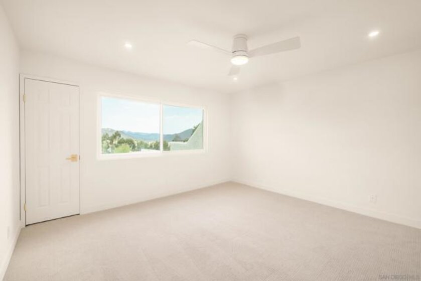 FHA & VA Approved Complex! Enjoy fantastic views of the mountains and Lake Hodges from this beautifully updated upstairs corner unit, filled with natural light and vaulted ceilings in the living room. This stylish home features brand-new white oak cabinetry, quartz countertops, and a fully refreshed bathroom for modern comfort. The spacious primary bedroom offers a huge walk-in closet plus an additional closet for plenty of storage. New dual-pane windows throughout, plush new carpeting, and a newer central HVAC system provide year-round comfort. A stacked washer and dryer are conveniently located in the hallway closet. Unit comes with one covered carport and one assigned open space just outside the unit, along with ample guest parking. Don’t miss this move-in-ready gem with serene views and quality upgrades!