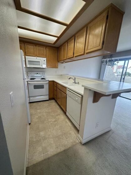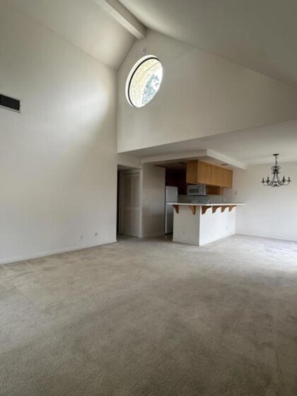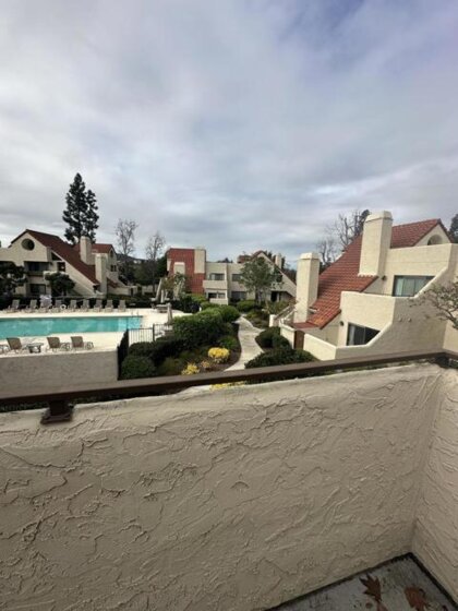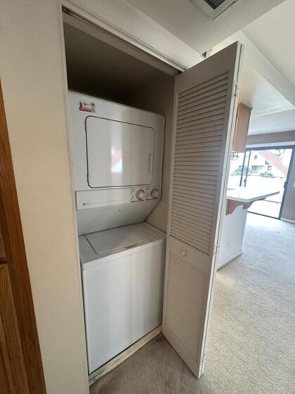 Amazing 1-Bedroom, 1 Bathroom second-story unit featuring cathedral ceilings in the living room and a cozy fireplace. Enjoy your private balcony and abundant storage throughout. The spacious bedroom includes a large walk-in closet, and a stacked washer and dryer are included for convenience. Parking is always at a premium, but this init comes with two assigned parking spaces, one covered. Ideally located close to the pool, this home combines comfort, convenience, and style.