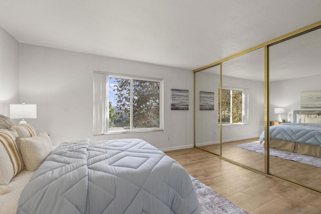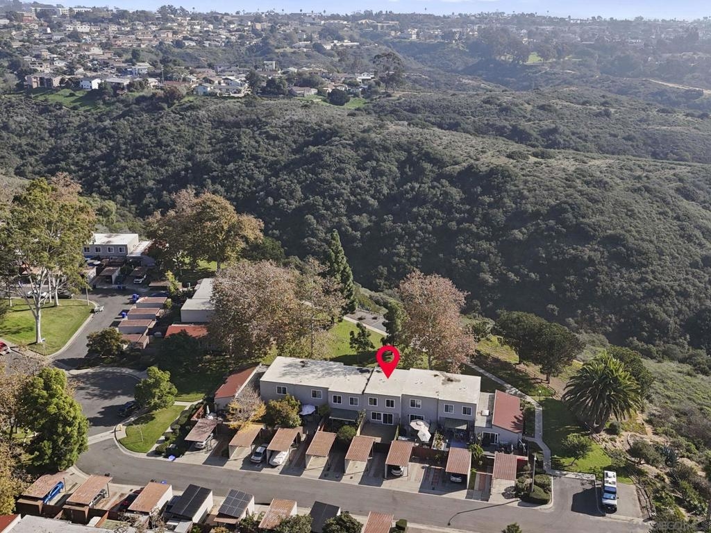 Come see why these townhomes rarely come on the market. Gorgeous location overlooking Tecolote Canyon! This peaceful, secluded, beautifully landscaped, pet friendly complex, is tucked away in a park like setting w/lots of trees, grass, a playground & community pool. Trail access just outside your door! South facing, light and bright with laminate flooring, in unit laundry! Newer cabinet doors, granite counters. Dual pane windows and slider! Lots of storage & closet space, Extra large enclosed patio with beautiful pavers! Assigned parking w/carport & plenty of guest parking. Centrally located w/easy access to freeways, just minutes to the beach, bay, & downtown and just across the canyon from USD!