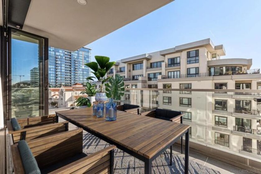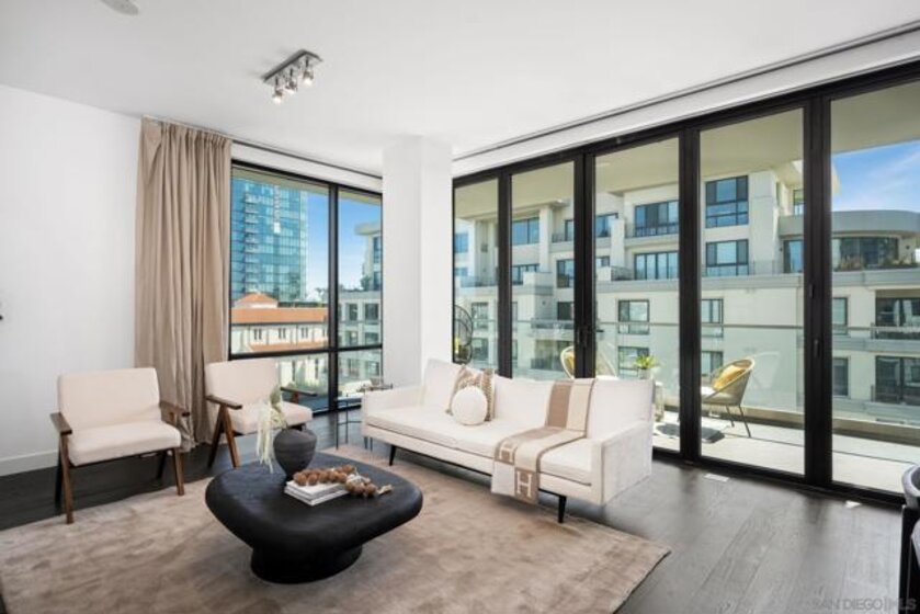Residence 601 at 41West offers the best of indoor-outdoor living in the heart of Bankers Hill. East-facing with a large private patio and a wall of retractable Nano doors, this home captures the morning light and city energy. The open floor plan features bedrooms on opposite sides for privacy, a primary suite with walk-in closet and luxury bath, and a chef’s kitchen with Italian cabinetry, 10 foot ceilings and wood floors. Enjoy a corridor view of 5th Ave. and Balboa Park, steps to restaurants, boutiques, and cultural destinations. With only 41 units and two side-by-side parking spaces, this boutique building offers elegant living just minutes from downtown, the airport, and the park. Perfect as a primary home or San Diego retreat. The open floor plan is both elegant and functional, with bedrooms thoughtfully placed on opposite sides of the living area for maximum privacy. The primary suite offers a generous walk-in closet and a spa-like bathroom with high-end finishes, while the chef’s kitchen showcases Italian cabinetry, sleek surfaces, and top-tier appliances, all complemented by beautiful wood flooring throughout. Enjoy a beautiful corridor view of 5th Avenue and Balboa Park, with vibrant restaurants, boutiques, and cultural landmarks just steps away. With only 41 residences, two side-by-side parking spaces, and a location minutes from downtown and the airport, 2604 5th offers the ultimate boutique urban lifestyle, perfect for a sophisticated primary home or a serene San Diego getaway.