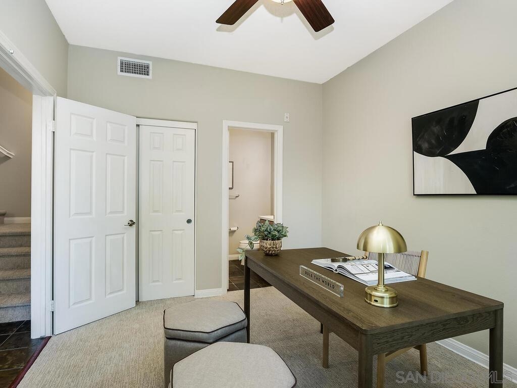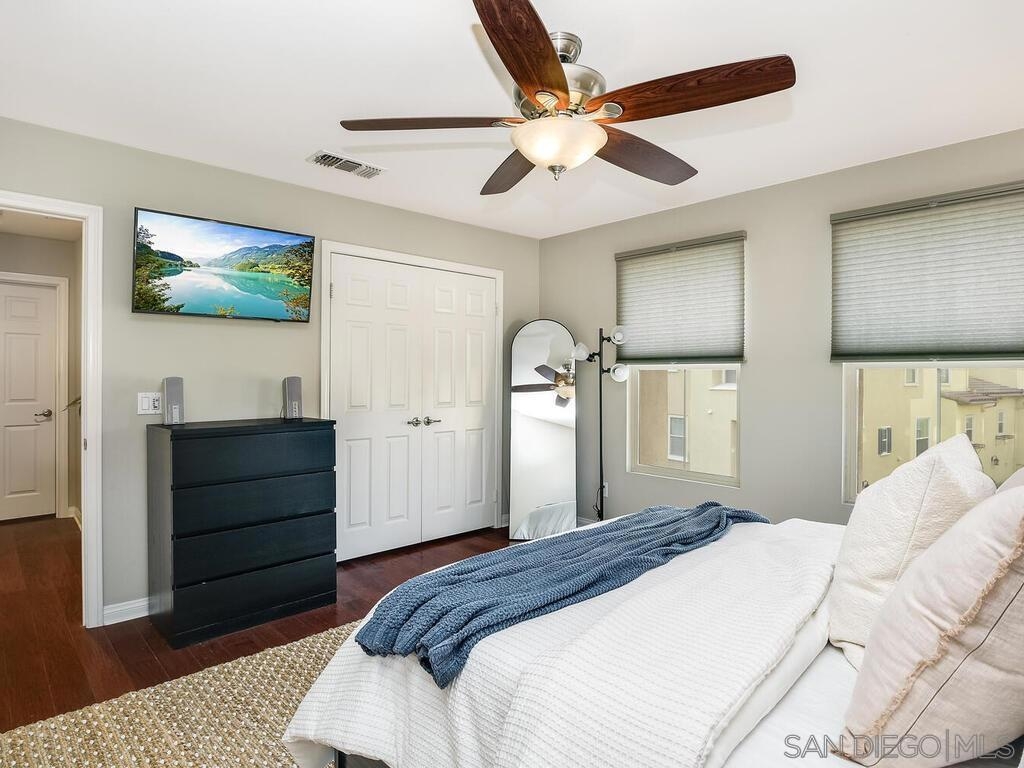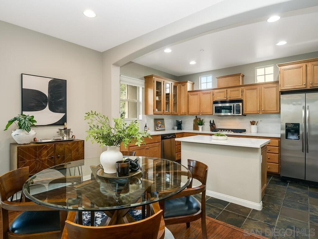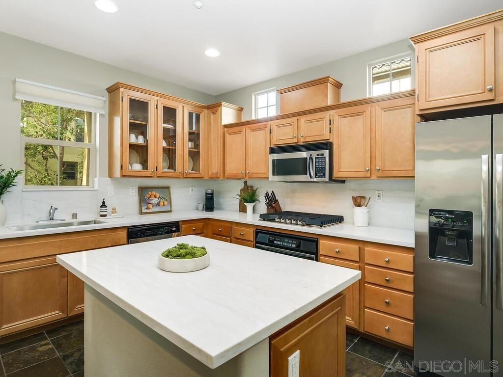 Welcome to 2684 Escala Circle, a beautifully updated Plan 3 Terrace residence in the sought-after community of Escala. Thoughtfully designed with three levels of living space, this home offers flexibility, comfort, and elevated style in one of Mission Valley’s most desirable gated neighborhoods. The entry-level features a private bedroom and full bathroom, ideal for guests, multigenerational living, or a home office, and is complete with new carpet. This level also provides direct access to the attached two-car garage for everyday ease and convenience. The main living level is bright and inviting, with an open-concept layout perfect for entertaining. The kitchen has been refreshed with new quartz countertops, providing a clean, contemporary feel and ample prep space. The dining area flows seamlessly into the spacious living room, anchored by a cozy gas fireplace. Step outside to the patio to enjoy the afternoon sun and relaxed indoor-outdoor living. This level also includes a convenient half bath and a dedicated laundry room, making daily living both practical and efficient. On the third level, you’ll find two spacious bedrooms, each with its own ensuite bathroom, creating a functional dual-primary layout perfect for privacy and comfort. New carpet on the stairs adds a fresh finishing touch to the home’s recent updates. Residents of Escala enjoy beautifully maintained grounds and resort-style amenities, including a clubhouse, pools, fitness center, tennis courts, and playground, all within a gated setting just minutes from everything San Diego has to offer.