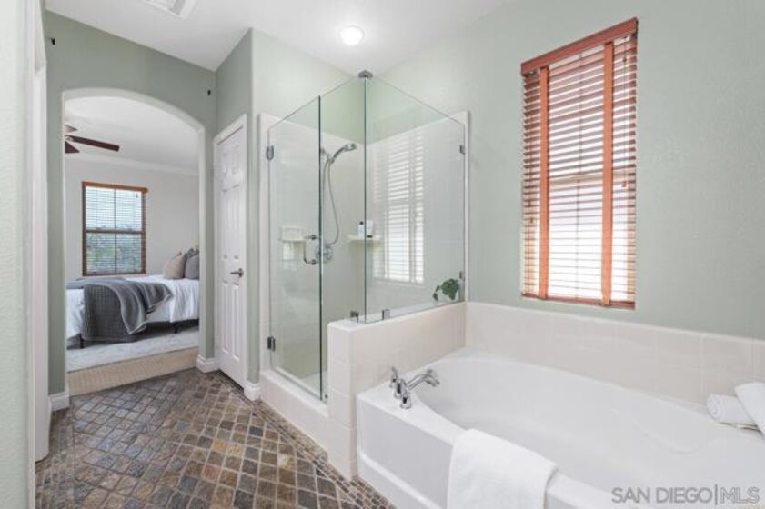Space, light, and privacy define this home, with the main living areas all on one level and no one above or behind. Natural light, an open layout, and views of greenery create a setting that feels both relaxed and refined. The kitchen offers generous counter space, bar seating, and a walk-in pantry, opening to the main living and dining areas. A covered veranda extends the living space outdoors—ideal for morning coffee or unwinding among mature trees. The primary suite includes dual sinks, a soaking tub, separate shower, and walk-in closet. Interior laundry, AC, a private two-car garage, and ample storage add everyday convenience. Located in the gated Escala community with pools, spa, gym, tennis and basketball courts, playground, and walking paths—just minutes to shopping, dining, and major freeways. Space, light, and privacy—you feel it the moment you walk in —natural light, an open layout, and views of greenery that make the home feel both relaxed and refined. All living is on a single level, with no one above or behind, creating a level of privacy that’s hard to find. The kitchen is designed to be part of the experience, with generous counter space, bar seating, and a walk-in pantry, all opening to the main living and dining areas. It’s a layout that adapts—quiet nights in, or gathering with friends around the kitchen and out onto the covered veranda. That outdoor space becomes an extension of the home—morning coffee, evening dinners, or a quiet place to unwind, framed by mature trees and open air. The primary suite is bright and comfortable, complete with dual sinks, soaking tub, separate shower, and a walk-in closet. Interior laundry, AC, a private two-car garage, and ample storage throughout add to the livability. The Verandas are set within the gated Escala community—known for its modern feel, well-kept grounds, and resort-style amenities. Residents enjoy access to pools, spa, gym, tennis and basketball courts, a playground, walking paths and more, all just minutes from shopping, dining, freeways and major access points throughout Mission Valley. Come experience the space, the privacy, and the lifestyle for yourself.