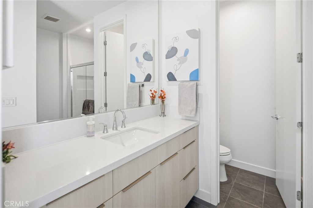 Experience luxury living within the exceptional Civita community by Toll Brothers, perfectly situated near world-class beaches, vibrant downtown destinations, and convenient freeway access. This stunning corner residence sits on a premium lot with unobstructed views and offers 4 bedrooms, 3.5 bathrooms, and 2,301 SF of thoughtfully designed living space, complete with a 2-car garage. Designer-selected finishes elevate nearly every space and are complemented by premium upgrades including KitchenAid stainless steel appliances, a side-by-side washer and dryer with pedestals, tankless water heater, owned solar, a NEMA electric vehicle charging outlet, and enhanced insulation. The first floor features a private bedroom with a full bathroom, ideal for guests or a home office, along with a modern entry hallway and an oversized under-stair storage closet. The second floor showcases an expansive open-concept living area anchored by a chef-inspired kitchen with a large center island wrapped in designer finishes. Highlights include ceiling-height cabinetry, dovetail soft-close drawers, designer hardware, a full island wrap, and striking quartz slab countertops. Exceptional storage is found throughout the home, including pantry and abundant cabinetry. The third floor is dedicated to comfort and functionality, featuring a spacious primary suite with a beautifully appointed bathroom with shower tiled to the ceiling and an extra-large closet. Two additional bedrooms and a shared full bathroom are thoughtfully positioned on the opposite end of the floor, along with a conveniently located laundry room. Civita offers true resort-style living with a 14-acre park and a spectacular $13 million recreation center featuring amenities such as a sparkling lagoon pool, lap pool, covered patios for year-round BBQs, a game room, and a state-of-the-art fitness club.
