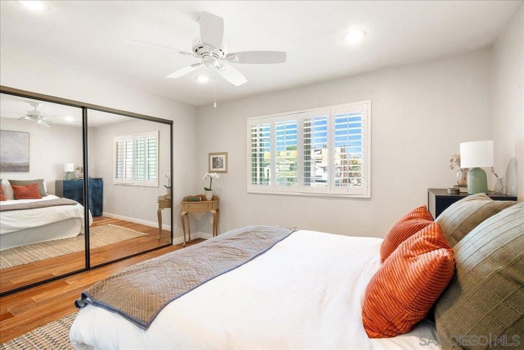 Welcome to Ocean Beach living at its best! This exclusive corner-unit condo is tucked away in the southwest corner of a quiet, private community, offering exceptional light, privacy, and space. Located on the third floor with no neighbors above, this upper-level home enjoys a peaceful setting and abundant natural sunlight throughout. Inside, you’ll find beautiful vinyl hardwood floors, all new triple paned windows, a bright open layout, and plantation shutters on every window. The home features 1 bedroom and 1 fully updated, modern bathroom, thoughtfully remodeled with contemporary finishes. Convenience meets comfort with an in-unit stacked washer and dryer. Additional highlights include a private storage closet right outside the front door and one secured parking space in the garage. Situated just minutes from Dog Beach, the sand, and the vibrant energy of Newport Avenue’s shops, restaurants, and cafés, this home perfectly captures the laid-back coastal lifestyle Ocean Beach is known for. Located right next to the Famosa slough which is a natural preserve for local wildlife! A rare opportunity to own a bright, private corner unit in a small, well-kept community near some of San Diego’s most beloved beaches.