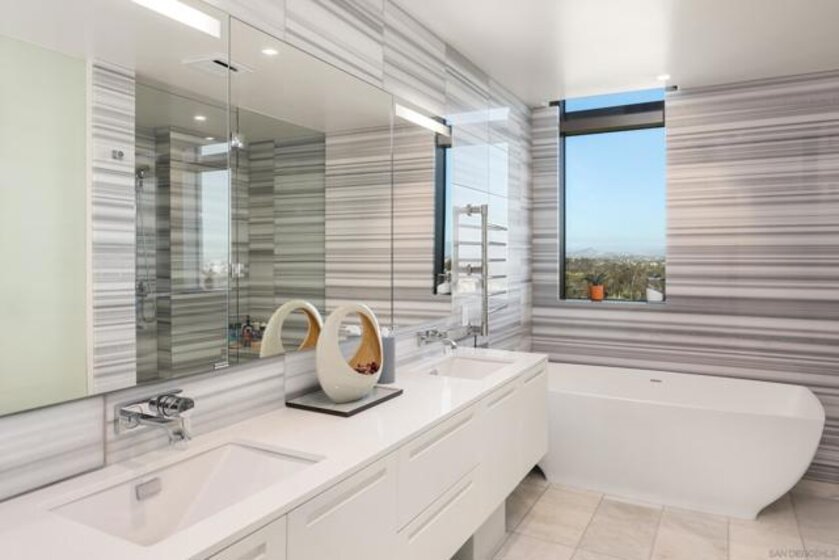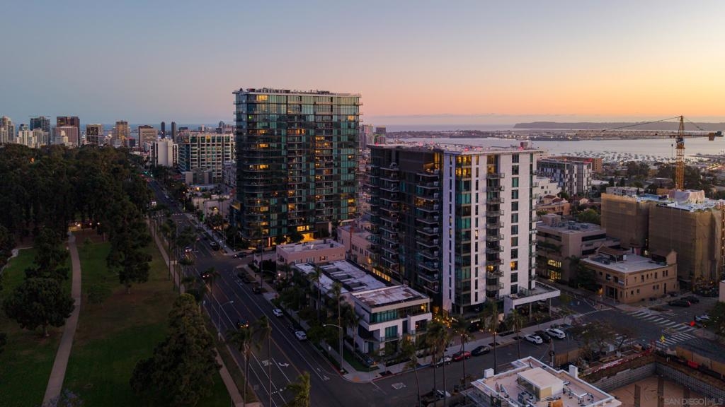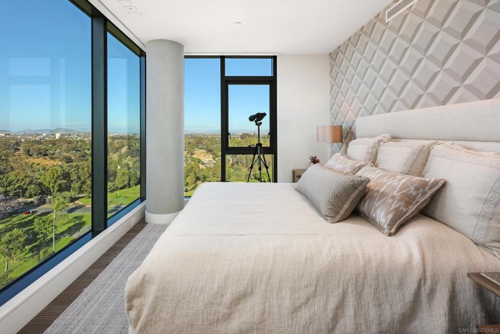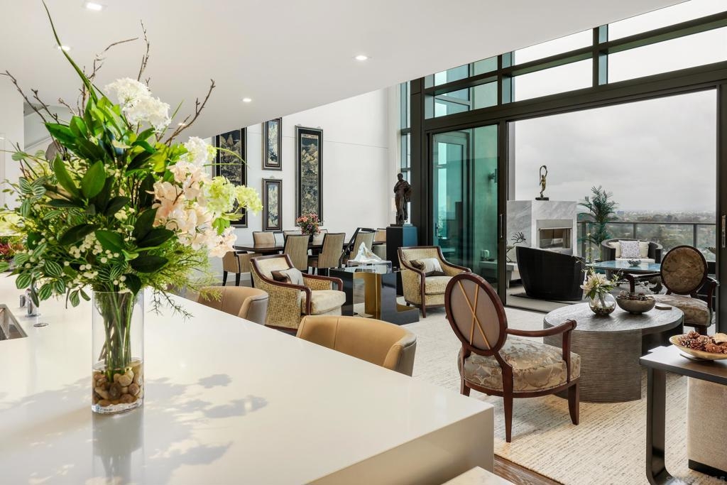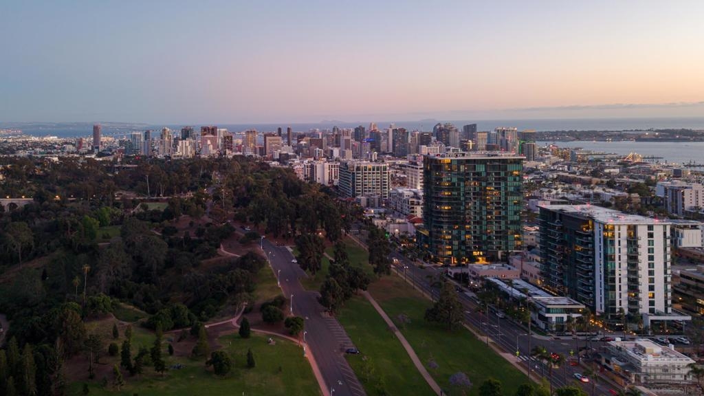 Perched high above the city within The Park at Bankers Hill, Penthouse 1302 is a rare and extraordinary offering that redefines elevated living in San Diego. Arriving via a private, direct-access elevator that opens into a grand foyer, the residence immediately reveals a sense of scale and exclusivity, defined by soaring 20-foot ceilings and dramatic floor-to-ceiling glass. Designed to seamlessly integrate indoor and outdoor living, the home offers two expansive terraces, complete with a private outdoor gas fireplace, overlooking the lush, protected canopy of Balboa Park and capturing rare, unobstructed views into the iconic San Diego Zoo. With an ideal east and northeast orientation, the residence is filled with soft natural light, creating a calm yet striking atmosphere throughout. Thoughtfully appointed with refined European finishes and bespoke upgrades, the chef’s kitchen serves as a sculptural focal point, showcasing a full suite of Miele appliances, including a 4-burner gas and electric cooktop, built-in refrigerator, oven, microwave, dishwasher, wine refrigerator, and vent hood, paired with Boffi cabinetry in Arctic White and a dramatic book-matched stone backsplash, all complemented by a walk-in pantry. DuChâteau Key West Duvall hardwood floors extend throughout, enhanced by custom Lutron lighting and designer window coverings that elevate both comfort and design. The thoughtfully designed two-level layout offers a rare sense of flexibility, with one bedroom on each floor, expansive open living areas, and a dramatic upper-level loft defined by exceptional ceiling height, complemented by a spacious private study or office. Both spa-inspired suites are elegantly appointed with soaking tubs, refined finishes, GROHE fixtures, and Toto toilets, while the primary suite is further distinguished by generous closet space, including a walk-in and multiple additional storage areas. Additional highlights include Honeywell climate control, a full-size Whirlpool washer and dryer, three side-by-side parking spaces with EV charging capability, and a private storage room. The main terrace enjoys added privacy, with no shared wall with any neighboring residence. Ideally positioned just moments from Balboa Park, acclaimed dining, boutique shopping, and cultural destinations, Penthouse 1302 represents a true statement residence and a rare opportunity to own one of San Diego’s most exceptional homes in the sky.