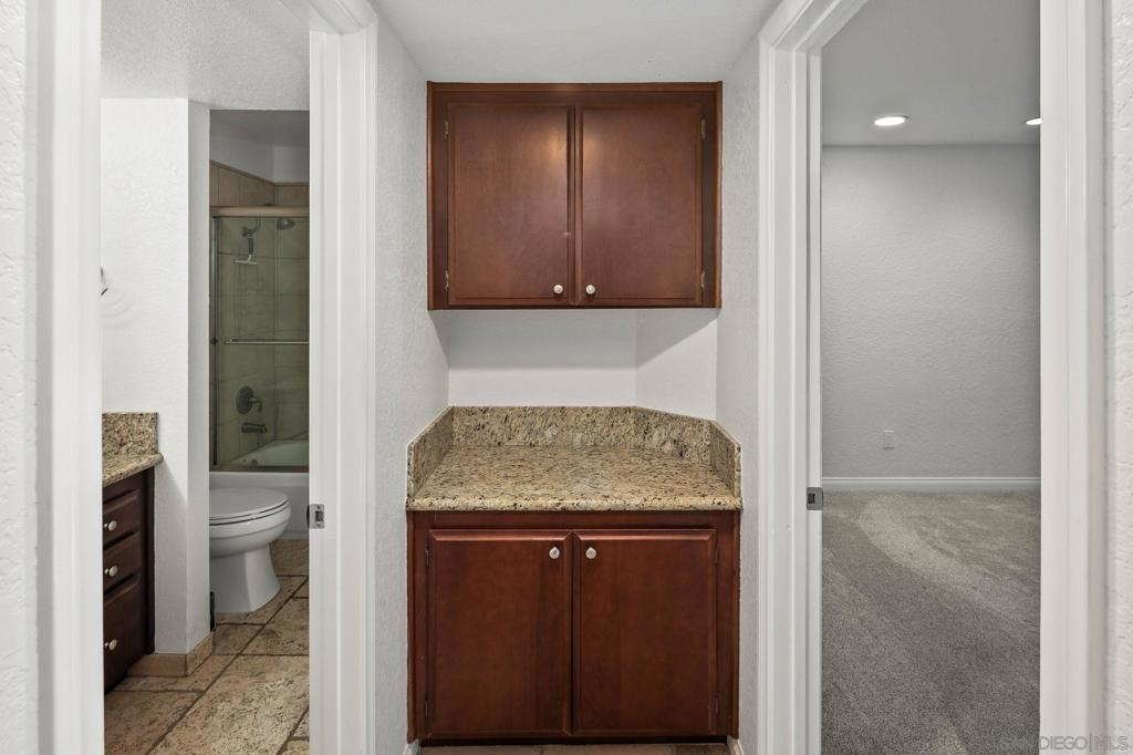 Entertaining offers between $675,000 and $725,000. Welcome to Westview Condominiums in desirable Point Loma! This spacious 2-bedroom, 2-bath residence offers 1,250 sq ft of comfortable coastal living in a peaceful and well-maintained community. Ideally situated on the west side of the complex, Unit 215 enjoys serene views of the Famosa Slough from the porch, along with relaxing views of the community pond and fountain from the large covered balcony—perfect for unwinding or entertaining. The thoughtfully updated kitchen features granite countertops, stainless steel appliances, and a convenient pantry, while tile flooring flows throughout the main living areas with cozy carpet in the bedrooms. The inviting living room boasts a corner fireplace, creating a warm and airy ambiance for those cool coastal evenings. Additional highlights include in-unit laundry, central heating & air conditioning, two side-by-side parking spaces, and guest parking. Residents also enjoy access to community amenities including a pool and spa. Conveniently located near shopping, dining, beaches, and major freeways, this home offers the ideal blend of comfort, style, and location.
