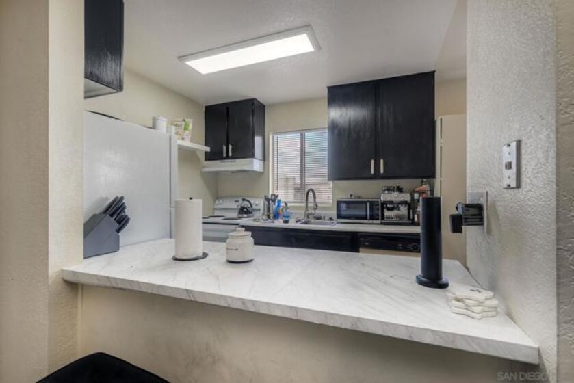 Welcome to your new home, a bright and inviting top-floor condo located in a gated community just minutes from San Diego’s most iconic coastal destinations. This beautifully maintained home offers a functional layout, comfortable living spaces, and unbeatable access to beaches, shopping, dining, gyms, San Diego International Airport, and the 8 and 5 freeway. Step inside to an open-concept living area filled with natural light, seamlessly connecting the living room, dining space, and private balcony — perfect for relaxing or entertaining. The well-designed kitchen offers ample storage and a smart layout that makes daily cooking a breeze. This home features two generously sized bedrooms, each with excellent privacy and convenience, making the floor plan ideal for homeowners, investors, or those looking for a coastal getaway. The gated community provides secure entry along with amenities such as a pool, spa, and convenient assigned parking. HOA covers common area maintenance, landscaping, building maintenance, roof, trash, and water. This one won’t last as its priced to sell fast, make an offer today!!