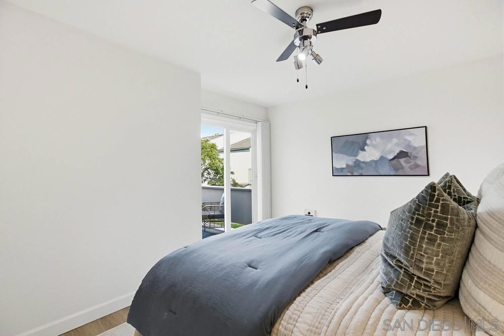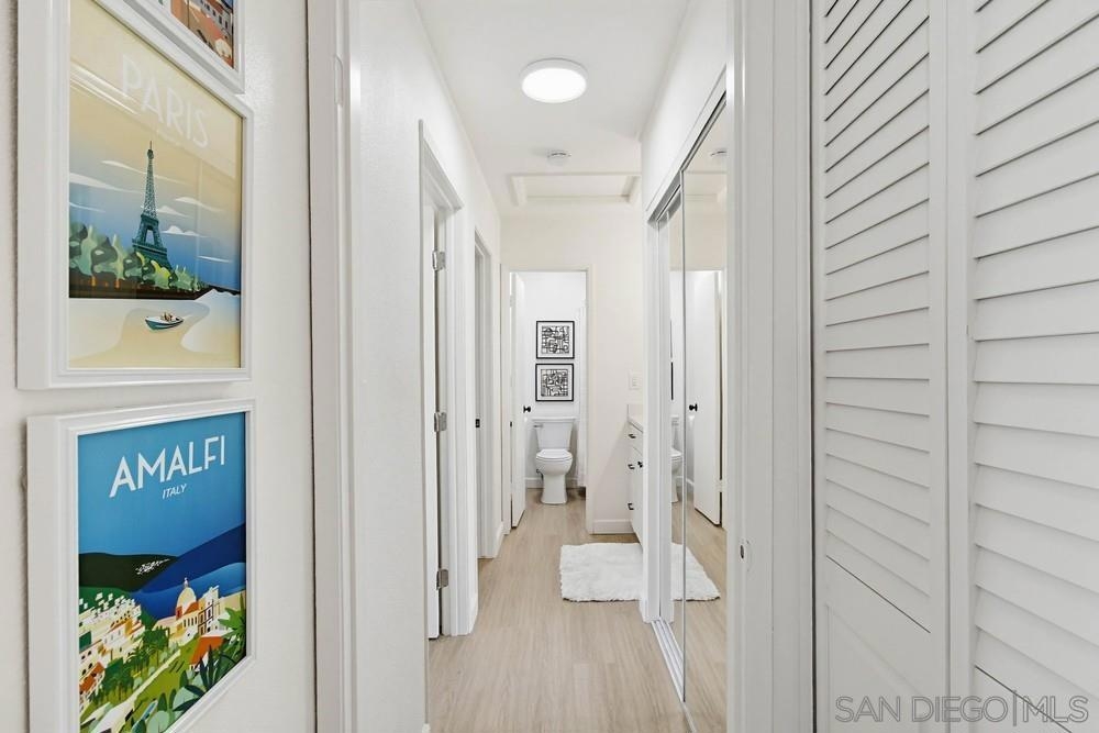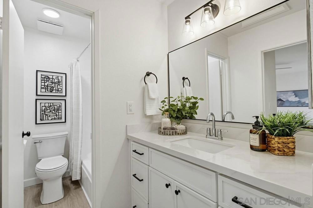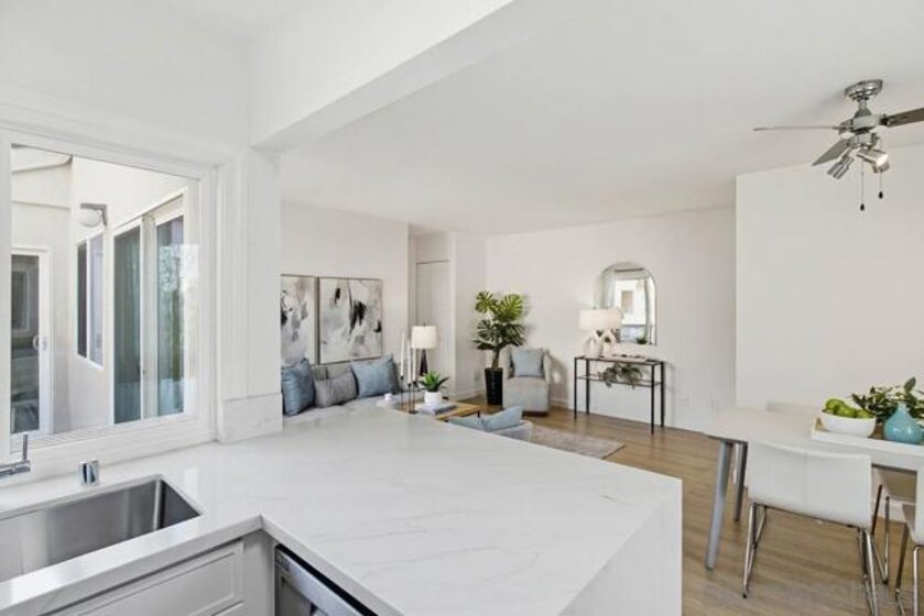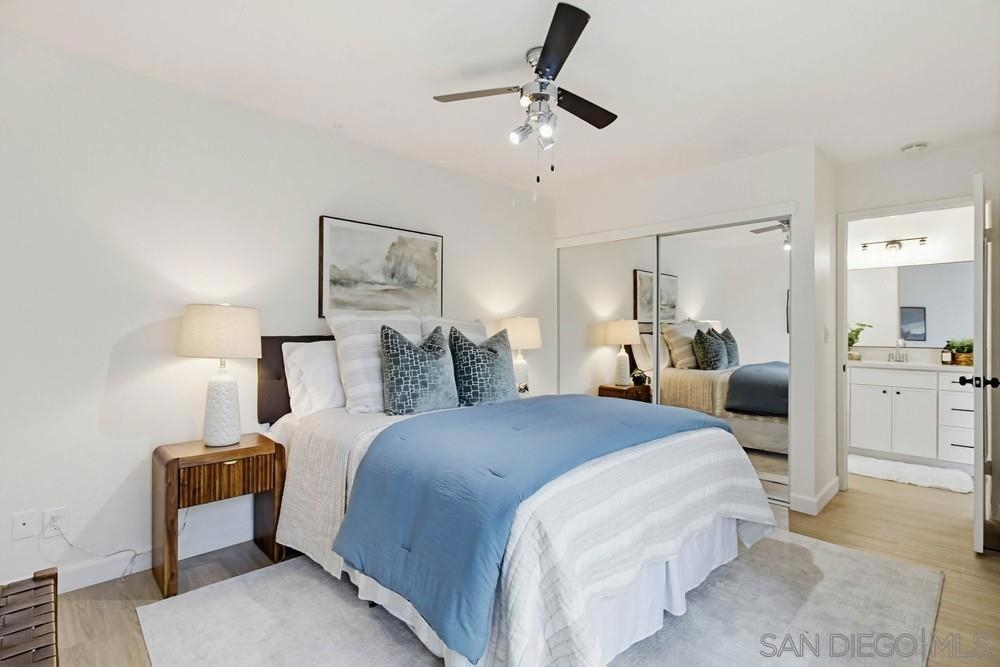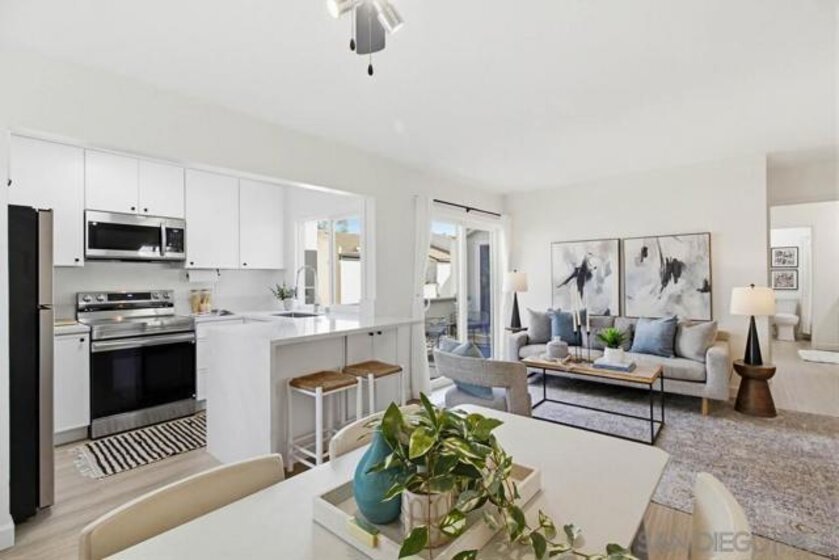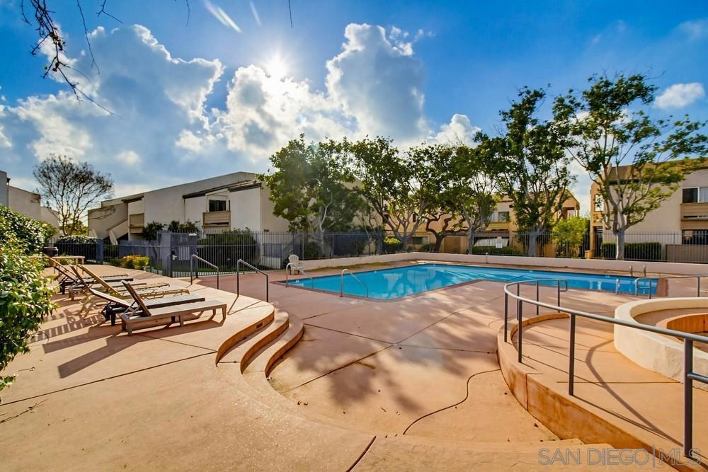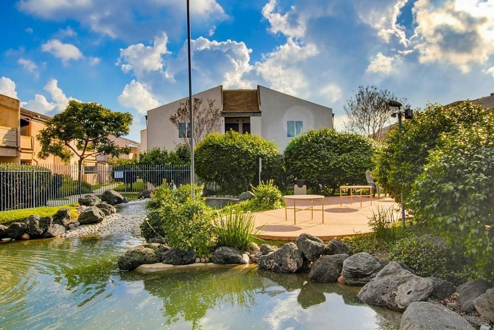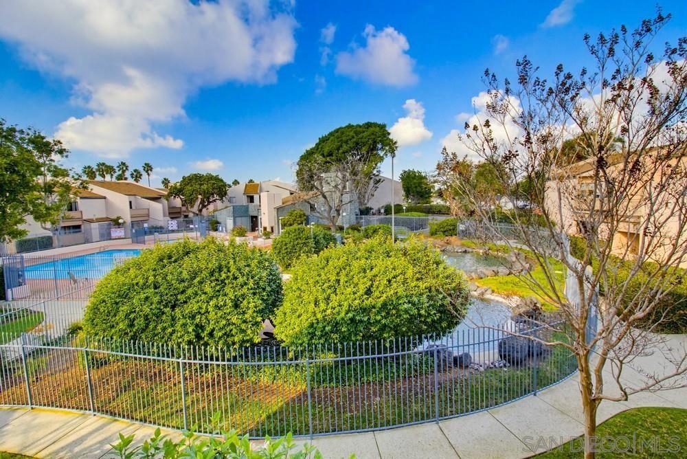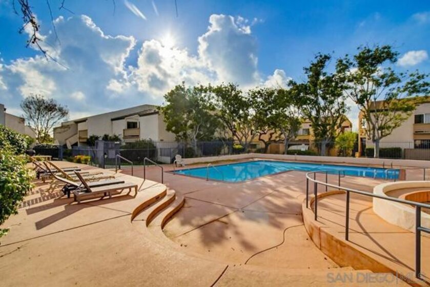 Welcome home to this cutie pie top floor end unit in popular Village Woods. This centrally located, turnkey property features 1 bedroom + optional bedroom/home office, luxury vinyl floors, remodeled kitchen w/stainless steel appliances, newer cabinets & quartz counters, remodeled bath, dual paned vinyl windows & sliders to an oversized private patio. One of the best locations in the complex overlooking greenery, fountains & the pool, plus close to the clubhouse and exercise room. Minutes to Mesa College, shopping, dining & freeways. And just 15 minutes to the beach. VA approved complex! Make homeownership your 2026 goal and get here quick!