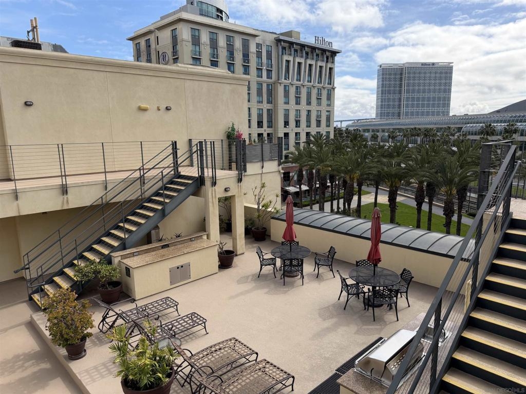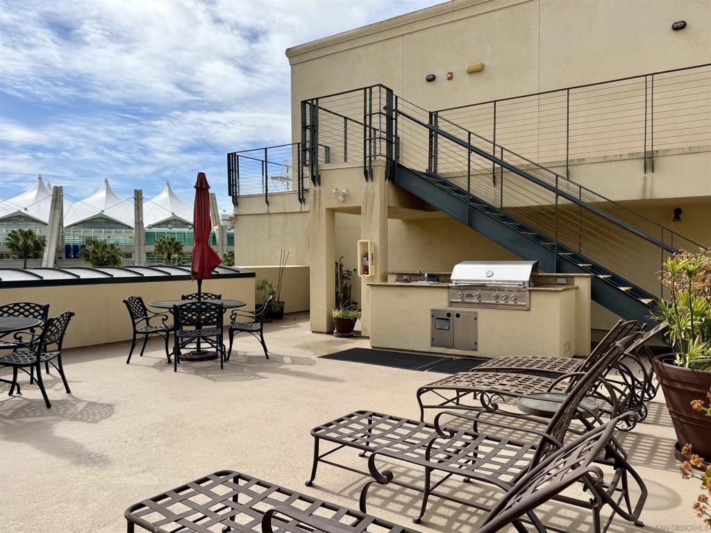 Experience luxury urban living in San Diego’s prestigious Marina District, directly across from the Convention Center. Gorgeous, bright, & remarkably quiet 2-BR, 2-bath offers a thoughtfully designed open floor plan ideal for modern living & entertaining. Spacious primary suite features a beautifully tiled flooring, walk-in shower & a generous walk-in closet. Wide-plank flooring, stainless steel appliances, granite countertops, & abundant cabinetry enhance the well-appointed kitchen. Oversized windows fill the home with natural light, while the private balcony, with its own storage closet, offers a pleasant outlook & seamless indoor-outdoor living. Additional highlights include central heating & brand-new air conditioning, ceiling fans, stacked washer & dryer, & two assigned parking spaces in a secure garage. Residents enjoy resort-style amenities including, fully equipped fitness center, landscaped courtyard, community & game room, meeting room, rooftop lounge with BBQ area & impressive city views. The electronically secured building features controlled access, two elevators, stairwells, & a conveniently located trash chute. HOA dues include water, sewer, trash, common area maintenance, & high-speed Google Fiber internet, creating a truly turnkey downtown lifestyle opportunity. Step outside & enjoy the best of downtown San Diego, Petco Park, Gaslamp Quarter, waterfront, Seaport Village, Trolley Station, Rady Shell at Jacobs Park, & countless restaurants, entertainment venues are all just minutes away. Balboa Park, San Diego Zoo, beaches, & medical centers are accessible.