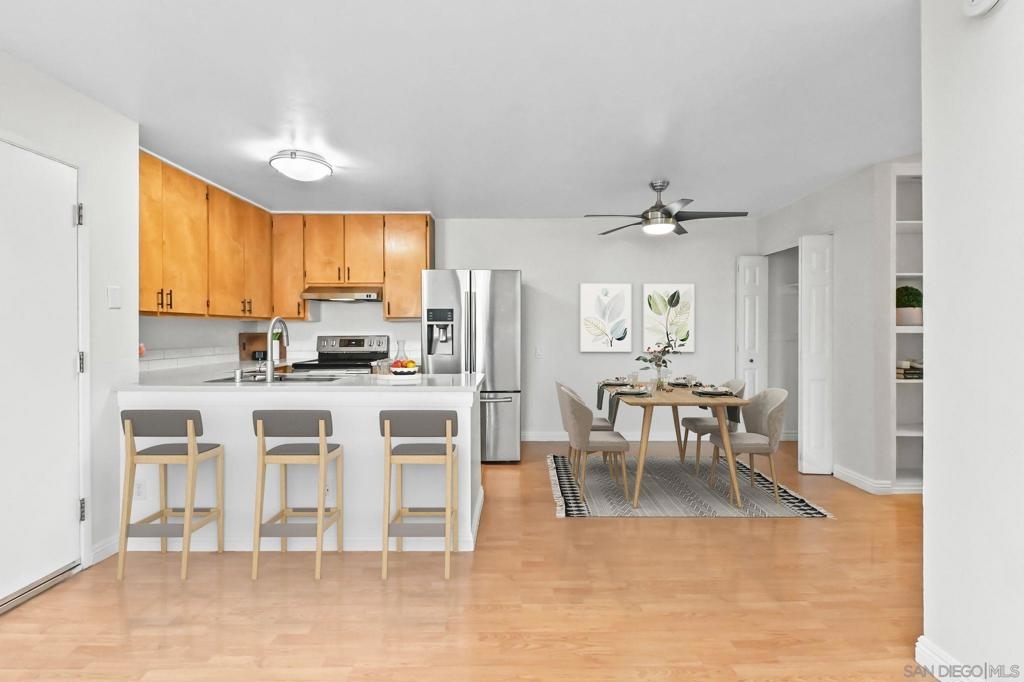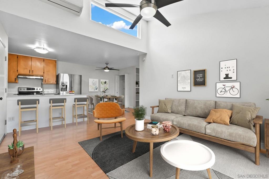 Welcome to Unit 235 at 3550 Ruffin Road! This top-floor, end-unit condo is tucked away in the desirable community of Serra Mesa. Featuring 2 bedrooms and 1 full bath, this charming home offers a thoughtful and efficient layout filled with natural light. The open living and dining area flows seamlessly into a functional kitchen—perfect for daily living and casual entertaining. Step outside to your private balcony, an ideal spot to enjoy your morning coffee. As a top-floor end unit, you’ll appreciate the peace and privacy of having no neighbors above and only one shared wall. Additional highlights include an assigned parking space, ample storage, and access to a well-maintained, VA-approved complex with low monthly HOA dues. Centrally located with easy access to major freeways, shopping, dining (just minutes from the vibrant Convoy District!), parks, and schools—this home offers the perfect balance of comfort, convenience, and location. A great opportunity for first-time buyers, down sizers, or investors looking to own in the heart of San Diego!
