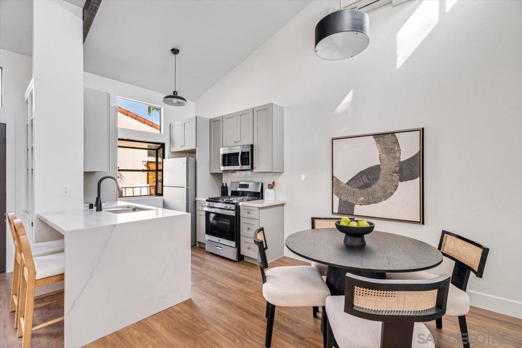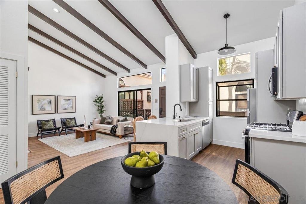 Welcome to 3722 Arnold Avenue, Unit 6 a beautifully remodeled 2 bedroom, 2 bath condo in the heart of North Park, where vibrant city living meets everyday convenience. Just three blocks from Morley Field and the trails of Balboa Park, your mornings can start with a peaceful canyon walk, tennis match, or coffee in hand as you explore one of San Diego’s most beloved outdoor spaces. Inside, this top-floor condo has been fully remodeled with modern elegance and comfort in mind. Vaulted ceilings and abundant natural light create an airy, open feel. The redesigned kitchen features sleek cabinetry, quartz waterfall countertops, new appliances, and stylish finishes, flowing seamlessly into the living space and private balcony perfect for morning espresso or evening wine! This sense of refinement extends into both bathrooms with new tile, vanities, and fixtures. Storage is never an afterthought, as the bedrooms feature custom-built closets designed to keep your lifestyle organized and effortless. You’ll also enjoy the everyday comfort of in-unit laundry, AC and in North Park, one of the biggest luxuries of all: your own private 2 car garage, you have secure, dedicated parking or extra storage space. Beyond your front door, the very best of San Diego is at your fingertips. The vibrant soul of North Park awaits, where you can spend your weekends exploring the city's best coffee shops and award-winning restaurants. This isn’t just a place to live; it’s an invitation to experience the ultimate walkable lifestyle in one of the most sought-after areas in the city.