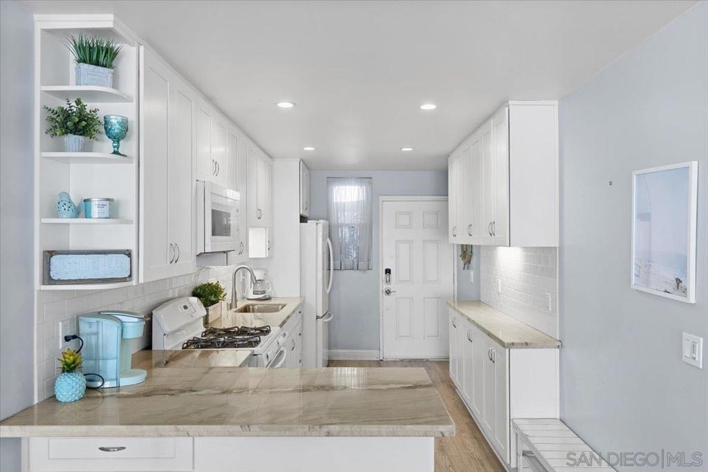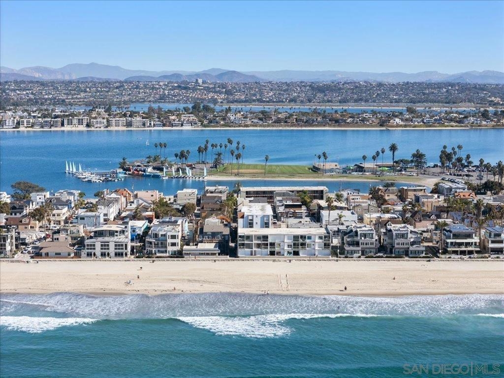 Pristine beachfront corner penthouse grants exceptional ocean views, from sunrise to sunset. Take advantage of this prime location with daily strolls on the boardwalk, year round dips in the ocean, and walkability to the cafes, beach shops, restaurants and attractions that only Mission Beach has to offer. With an open concept layout, you can enjoy the ocean breeze and nonstop views from the comfort of your own home. The great room opens through sliding glass doors to your oceanfront, private deck, where you can take in the scenery from the South Mission jetty to Crystal Pier. Besides ocean views, the kitchen also features marble countertops, gas stove, and an eat-at counter. Primary bedroom opens to your spectacular private deck, and you don't even need to get out of bed to enjoy the view. Numerous windows provide an abundance of natural lighting, plus the ease of recessed lighting with dimmers throughout. Separate vanity off of the second bedroom. 2 full sized, assigned parking spaces, and laundry on site. Don't miss your chance to live the Southern California dream all year long!