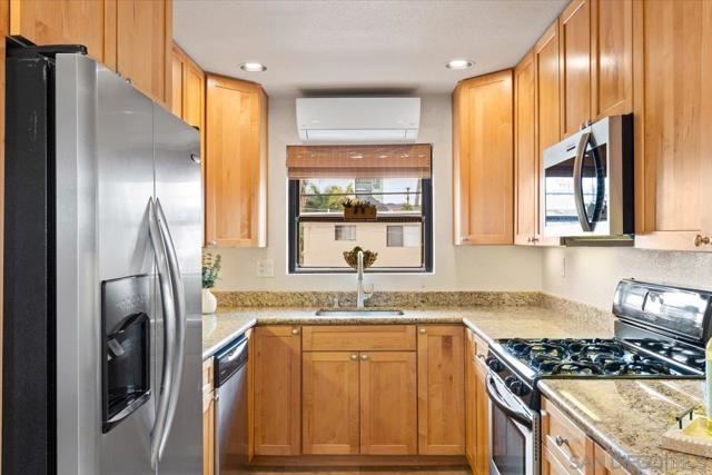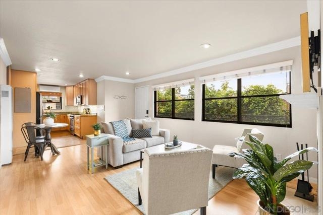 Effortless Uptown Living! Situated in the highly desirable Hillcrest neighborhood, this thoughtfully updated end-unit condo is a rare find — offering 2 spacious bedrooms, 2 upgraded bathrooms, in-unit laundry, 2 assigned parking spaces and elevator! — the ideal combination of comfort, style, and an unbeatable location. Step inside to an open, light-filled layout with high ceilings, crown molding, recessed lighting, and laminate flooring throughout. Enjoy year-round comfort with two mini-split A/C & heating systems, and a cozy fireplace in the living room. The updated kitchen includes granite countertops, stainless steel appliances, and ample cabinet space for all your storage needs. The primary suite is a true retreat, offering its own private balcony, an en-suite bath, and abundant natural light. The second bedroom is generously sized with a walk-in closet — perfect for guests, a home office, or both. Located in Sussex Villas — a boutique 9-unit building with elevator access, gated underground parking, private storage, and low HOA fees — this is a home designed to elevate everyday living with style and ease. Live just minutes from Downtown, Balboa Park, the Hillcrest Farmers Market, museums, beaches, and some of San Diego’s best restaurants, cafés, shopping, and nightlife. Quick access to major freeways makes commuting a breeze. Whether you're looking to own your first home, downsize, or invest in a prime San Diego location, this condo offers everything you've been looking for — make it yours before it’s gone!