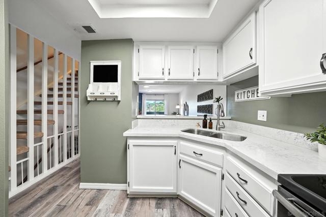 Tucked away in a secure gated community in the heart of the College Area, this beautifully updated townhome offers a perfect blend of comfort, character, and functionality across three thoughtfully designed levels. The main floor is made for entertaining, featuring a bright and modern kitchen, a dedicated dining area, a cozy living room with a fireplace, and a convenient powder room. Upstairs, you'll find a spacious primary suite and a generously sized guest bedroom with its own full bath. The lower level provides a versatile bonus space with a large laundry/storage area, ideal for keeping your home organized. Enjoy the privacy of your own front yard and a spacious balcony overlooking the landscape, plus the ease of an attached 1-car garage and a separate assigned parking space. With low HOA fees covering water, trash service, landscaping, and common area maintenance, this home offers incredible value. The complex is both VA and FHA approved - and best of all, the property comes with an assumable VA loan. This location is centrally located in San Diego with easy access to I-8 and HW-94. A short drive to downtown, the airport, Target, Sprouts, Trader Joes, Walmart, Mission and Fashion Valley Malls, and so much more. SDSU is just minutes away, and University Ave and El Cajon Blvd offer many restaurants and coffee shops right around the corner.