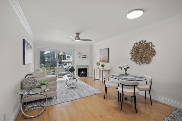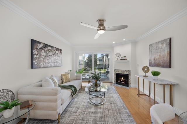 LOCATION, LOCATION! Experience your ideal Uptown lifestyle in this beautifully refreshed Cliffbridge Estates residence featuring wood floors, elegant crown molding, and an ambient fireplace accented with new LED lights and custom tile that ties seamlessly into the updated kitchen. Enjoy upgraded double pane sliding doors with a screen that opens to your private balcony. The kitchen includes stainless appliances, stone surfaces, ample cabinetry, new custom tile, new kitchen sink/faucet, new LED lights and an oversized walk-in pantry offering exceptional storage. The spacious bedroom features new carpet, dual closets, and a ceiling fan, while the bathroom and tub enclosure shine with new custom epoxy surfaces. With a fresh paint job throughout, newer dual-pane windows, and a designated parking space, this is Uptown living at its finest—just steps from all the dining, shopping, and energy Hillcrest is known for. Cliffbridge Estates is a coveted and secured community in the heart of Hillcrest. Enjoy being within walking distance of the Hillcrest Farmers Market, Balboa Park, some of the city’s best restaurants, and the iconic nightlife for which Hillcrest is known. Residents enjoy a community pool, spa, tranquil courtyard, and fitness center: all for lower-than-average HOA fees!
