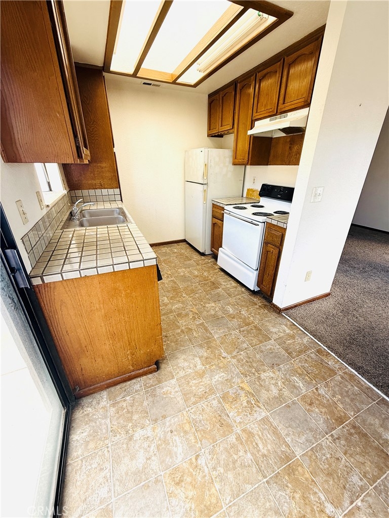 Top-floor opportunity with major potential! This 2-bedroom, 2-bath condo offers 720 sq ft of possibilities—featuring a living room fireplace, skylights in the kitchen and bathroom, in unit laundry, and a balcony accessible from both the kitchen and primary suite. Includes a single-car garage and great layout. Bring your vision because this unit needs some TLC. A great opportunity to enter the housing market as a first-time homebuyer ready to build equity with a little elbow grease.