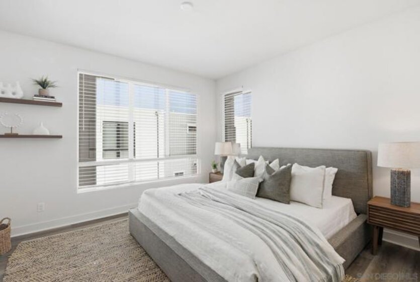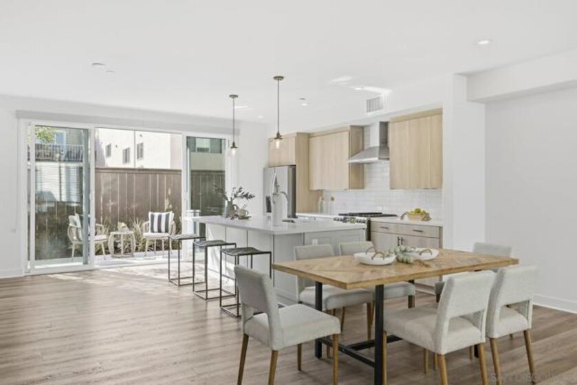 Nestled in the highly coveted Point Loma Heights neighborhood and newly built in 2024, this stunning contemporary townhome delivers modern coastal living at its best. Enjoy two stories of light-filled space within walking distance to shopping and acclaimed San Diego restaurants, and just minutes to Ocean Beach, Sunset Cliffs, Barnes Tennis and Pickleball Center and the energy of Liberty Station. Highlights include an owned solar system, central A/C, and an oversized two-car attached garage with hobby space and ample storage. The open-concept kitchen, dining, and living areas feature an expansive island, pendant lighting, quartz countertops, tiled backsplash, top-tier GE stainless appliances, a gas range, recessed lighting, and beautifully finished cabinetry with soft-close drawers. Private, enclosed landscaped patio for easy indoor-outdoor living. Luxury vinyl plank flooring runs throughout. A convenient powder room sits on the main living level, while the third floor offers a spacious primary suite and bath retreat, two additional bedrooms, and an additional full bath. Thoughtful upgrades include premium Norman sunshade blinds, a tankless water heater, vinyl windows, and a metal entry awning, along with an owned SunPower solar system and more. Contemporary, stylish, and truly move-in ready, this home checks every box.