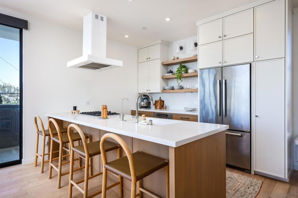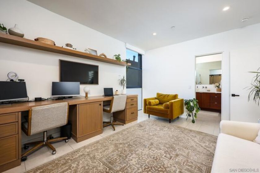 Stunning, design-forward 2-bed, 2-bath corner townhome reimagined for modern luxury living in the heart of North Park, offering 1,570 sq ft of light-filled, elevated space. Soaring ceilings and coveted southwest/west exposure deliver exceptional natural light, glowing city lights, and unforgettable sunset views. The open-concept living area is anchored by a statement island kitchen with upgraded cabinetry, quartz countertops, a built-in wine cooler, Bosch appliances, and a newly installed water filtration and softener system. A thoughtful interior concept by Solstice Design creates a refined, cohesive aesthetic throughout. Floating stairs finished in white oak, paired with porcelain tile and engineered hardwood floors, lead to a wraparound private deck—an inviting extension of the living space ideal for entertaining or unwinding at golden hour. The spacious primary suite features dual sinks, a walk-in closet, and an oversized rain shower for a spa-like retreat. Additional highlights include Hunter Douglas remote-controlled window coverings, alarm system, keyless entry, and a recently painted building exterior reflecting ongoing care throughout the development. Ideally located near the Historic Lafayette with walkable access to North Park’s celebrated dining, culture, and lifestyle. Private 2-car garage included.