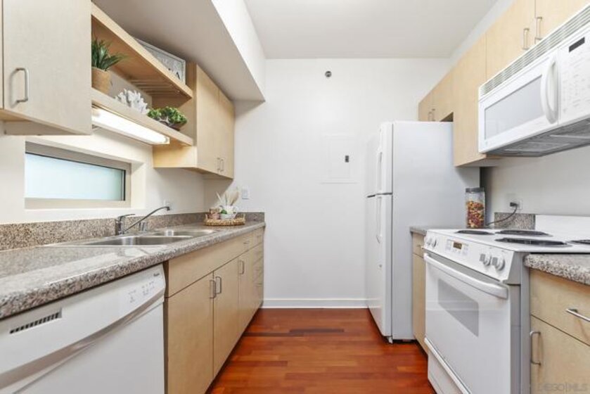 Welcome to your urban-meets-coastal escape in the heart of San Diego! This charming 766-square-foot condo, built in 2004, is tucked within the highly sought-after Acquavista community, offering a perfect balance of tranquility, comfort, and vibrant city living. Nestled in the center of Little Italy, you’ll be just steps away from buzzing cafés, iconic restaurants, artisan markets, and peaceful waterfront strolls. Inside, this inviting one-bedroom, one-bath retreat features an open layout that seamlessly connects the living, dining, and kitchen areas—excellent for entertaining or unwinding after a day of exploring the city. The charming galley-style kitchen offers a refrigerator, microwave, and dishwasher, providing everything you need for easy, efficient daily living. Residents enjoy an impressive array of community amenities, including a sparkling rooftop pool & spa, a fitness center, two welcoming lobbies, and outdoor barbecue areas perfect for gatherings. Additional conveniences—such as air conditioning and valet garage parking for one car—enhance your everyday comfort. In-unit laundry makes chores a breeze, giving you more time to enjoy Little Italy’s lively energy or take in San Diego’s stunning shoreline. Your ideal San Diego home awaits—don’t miss this incredible opportunity!