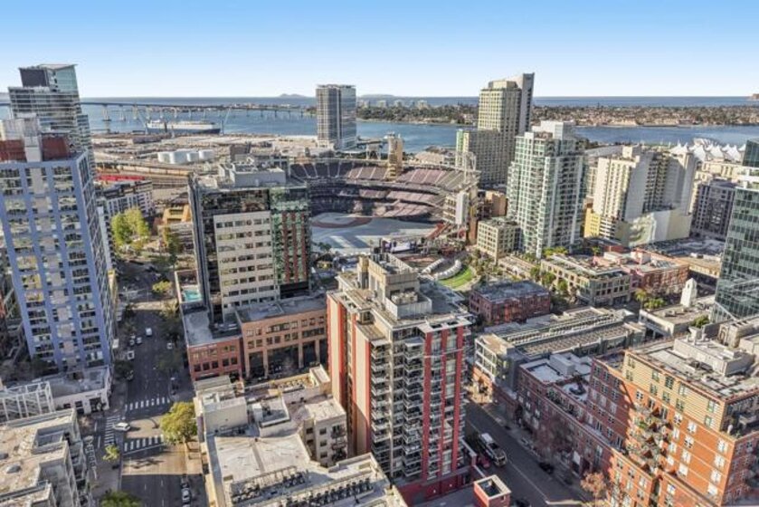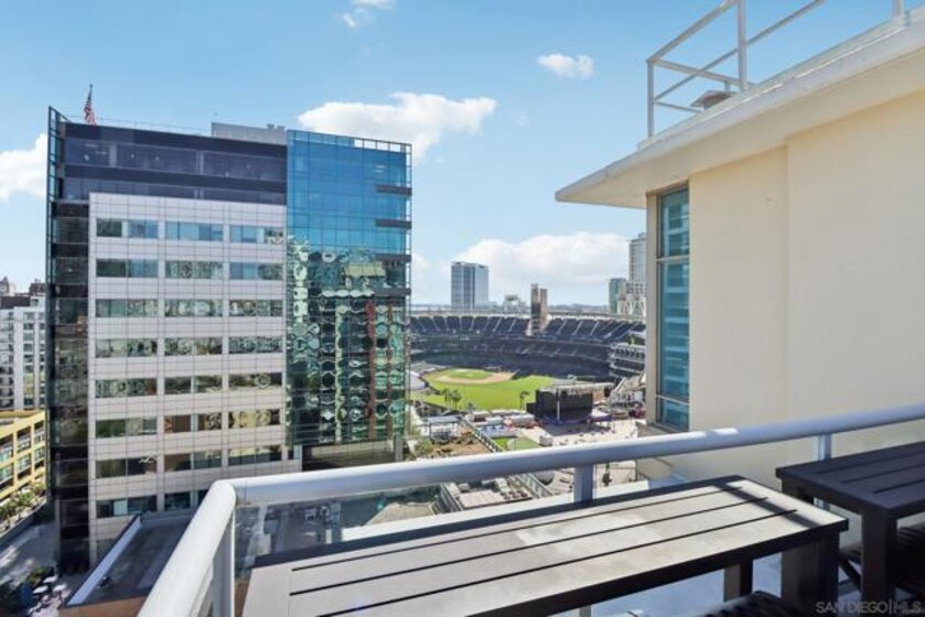 Step into a bright and inviting 1-bed, 1-bath condo in Diamond Terrace, one of East Village’s most vibrant addresses. Floor-to-ceiling windows fill the home with natural light and frame views of the city, while the private balcony overlooks Petco Park, offering a front-row seat to the energy of the ballpark. Imagine enjoying morning coffee above the neighborhood or unwinding in the evening as the stadium lights glow and the sounds of the city drift below. Inside, the open living space flows into a kitchen with stone countertops and stainless steel appliances, with in-unit laundry and central air adding everyday comfort and convenience. Enjoy a spacious primary suite with access to the oversized bath from both the bedroom and living area. Diamond Terrace rises 14 stories with 113 residences and offers a secure lobby, underground parking, a fitness center, and a top-floor community room with an outdoor terrace and BBQ area, perfect for relaxing or gathering with friends while taking in sweeping views of the skyline. Located just steps from Petco Park, Gallagher Square, the Gaslamp Quarter, and countless restaurants, cafes, and nightlife options, this home places you in the heart of downtown San Diego. More than just a condo, it offers a lifestyle where ballgames, concerts, dining, and city life are all part of the everyday experience.