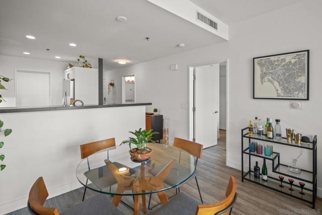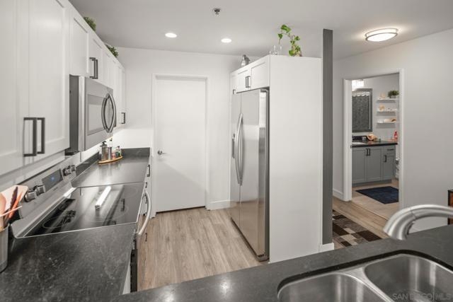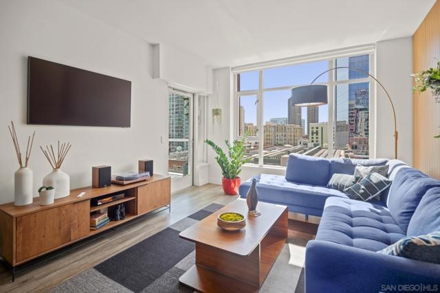 Modern, bright and meticulously maintained 1-bedroom condo with balcony at Diamond Park Terrace, located in the heart of East Village, with amazing views into Petco Park. Move-in ready and offered turn-key, this stylish home presents a bright open floor plan with wood flooring, a beautifully updated kitchen featuring ample cabinetry, counter space, and stainless appliances. The spacious bedroom showcases downtown views, a walk-in closet with custom shelving, and a roomy bath with dual access. The home also features an art frame TV and an in-wall safe for added security and convenience. Enjoy one secure gated parking space plus a separate storage unit. Community amenities include a rooftop terrace with spectacular views into Petco Park’s “Baseball Diamond,” fitness center, lounge, and BBQ areas. Live steps from Petco Park, the Harbor and Marina, the Gaslamp Quarter, Little Italy, and world-class dining, shopping, and entertainment. A unique opportunity to own a turn-key property in a prime location.