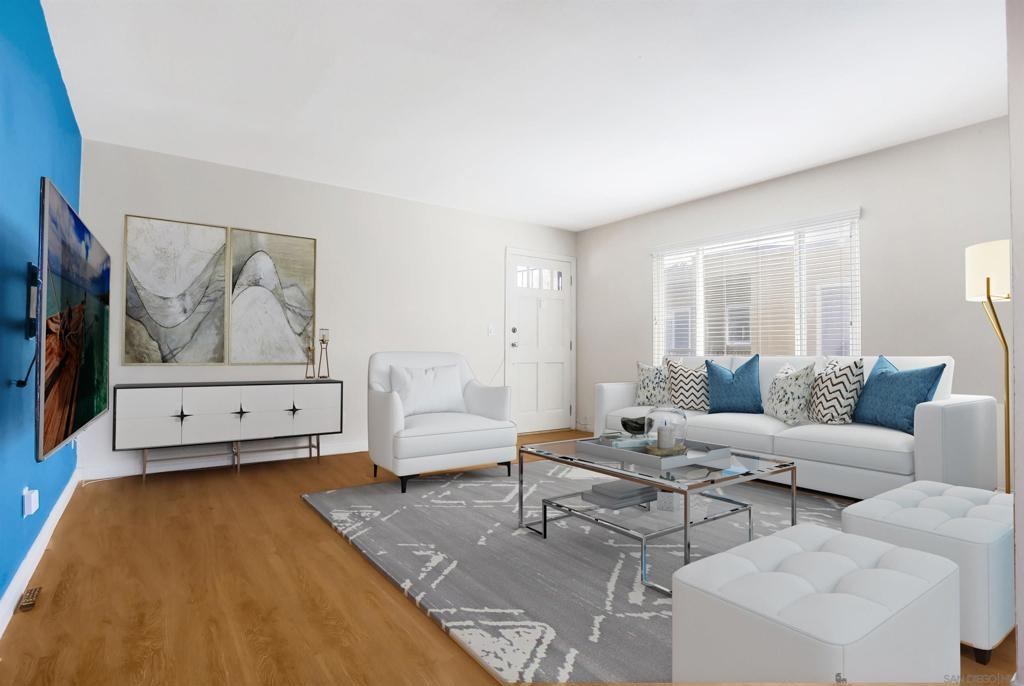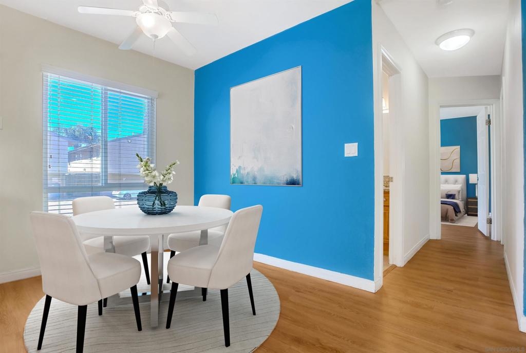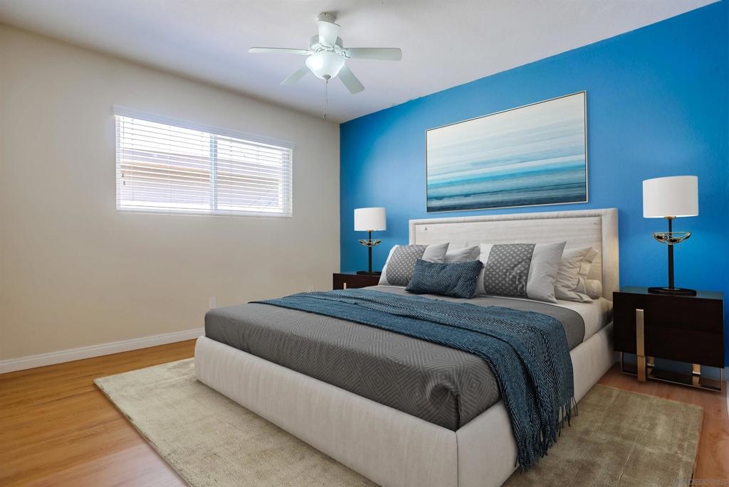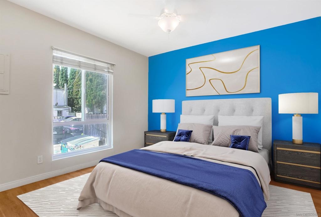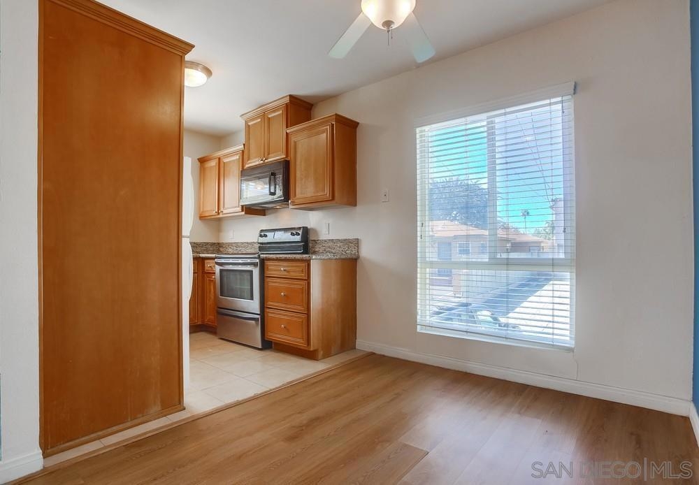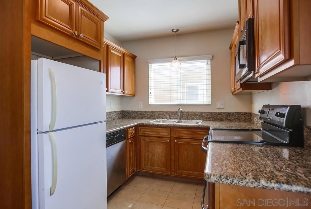 You'll adore this top-floor corner condo with just one common wall in a great walking neighborhood, just 8 minutes from SDSU. A contemporary two-bedroom, two-bathroom floor plan with windows on all four sides provides plenty of natural light and seclusion. Main bedroom offer a walk in closet and a walk in shower. This home includes air conditioning and a washer/dryer combo. Just a few steps separate the entrance door from the reserved parking space. A grocery store is directly across the street, and there are plenty of stores and restaurants nearby. This residence is in turn key condition with laminated floors throughout, granite countertops, range has vent to the outside. As the best unit in the complex, this opportunity won't last long. Short walk to Colina del Sol park w a dog park.