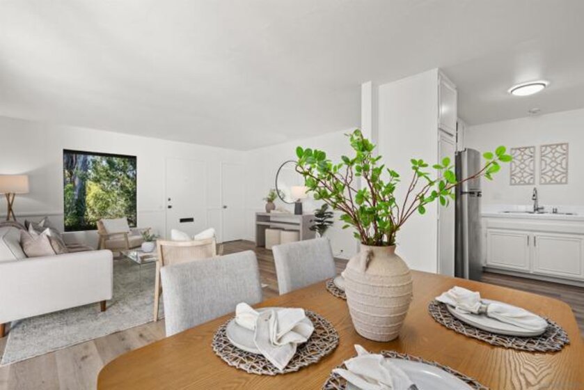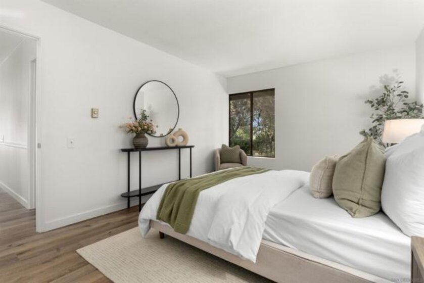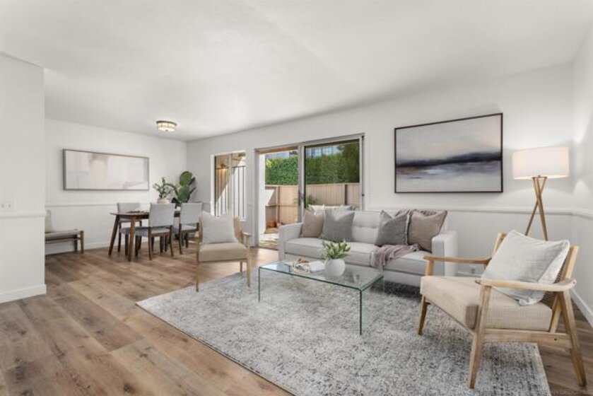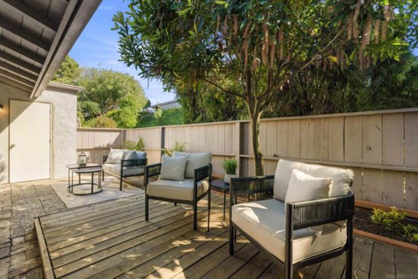 Welcome to this beautifully updated end-unit residence in the highly desirable Genesee Vista community of La Jolla. Thoughtfully renovated and move-in ready, this single-level home offers a bright, open-concept layout enhanced by abundant natural light and modern finishes throughout. The spacious living area opens seamlessly to a private enclosed patio with deck, an ideal extension of the home, perfect for relaxing evenings or effortless entertaining. New luxury vinyl plank flooring runs throughout, complementing the redesigned bathroom featuring a sleek contemporary vanity and updated finishes. The convenience of in-unit laundry adds to the home’s comfort and functionality. Ideally situated near UCSD, premier shopping, dining, and San Diego’s world-class beaches, this turnkey residence delivers the perfect balance of style, location, and low-maintenance La Jolla living.