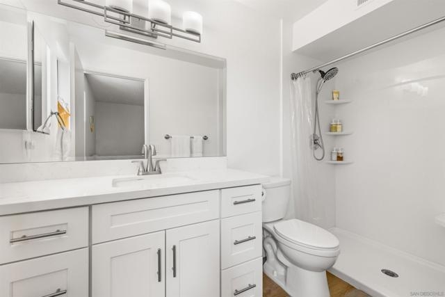 Welcome to your private urban retreat in the heart of University Heights. This beautifully updated 2Bed, 2Bath end unit offers exceptional privacy, abundant natural light, and a rare combination of features that distinguish it from every other condo in the complex. Step into a spacious open-concept layout featuring sleek quartz countertops, upscale stainless steel appliances, and a custom butler’s pantry with 10 feet of additional countertop and storage. Enjoy the convenience of an in-unit 4.8 cu. ft. all-in-one washer-dryer that is large enough to handle a king-sized comforter. The expansive primary bedroom includes a private ensuite bathroom, the unit is equipped with central heating and air for year-round comfort. Relax on your private balcony with sunset views and seasonal firework displays from SeaWorld. Located on the same level as the garage (Level 1), this unit shares only one wall for added tranquility. What sets this unit apart is a private tandem garage that includes an attached 8' x 10' storage area. There’s ample space for two vehicles plus easy access to surfboards, toys, seasonal gear, and other lifestyle essentials. The gated community offers two rentable guest suites for visiting family and friends, EV charging stations, and low HOA fees that covers hot and cold water, trash, and exterior maintenance. Walkable to Hillcrest, Normal Heights, and Kensington, with easy freeway access and proximity to top-tier dining and shopping. This is one of a kind!