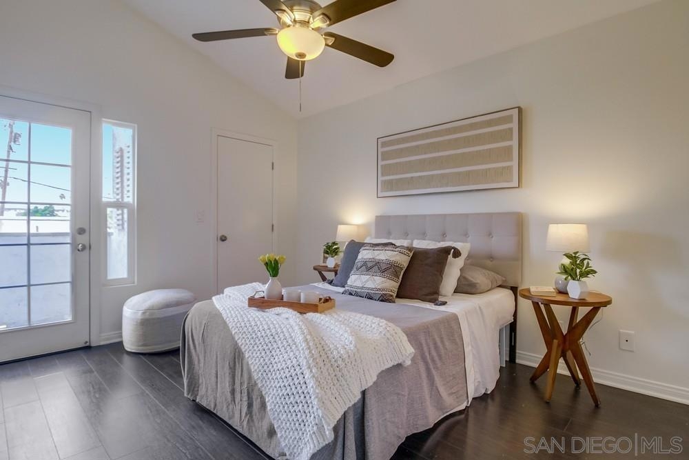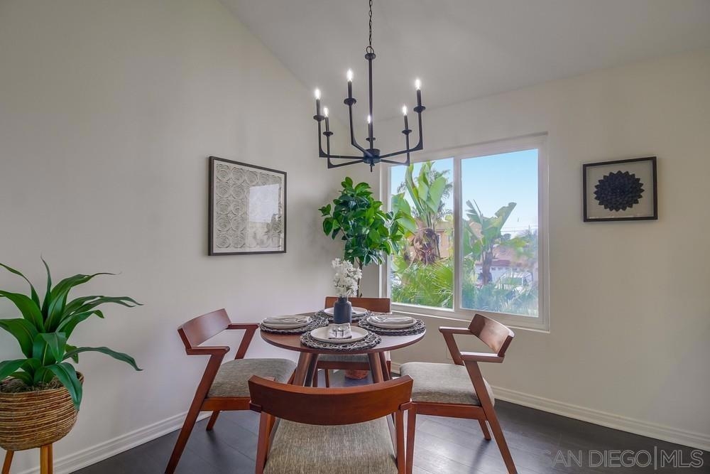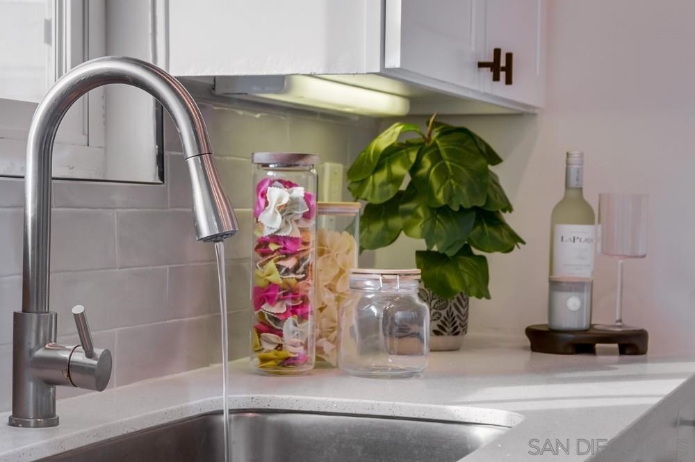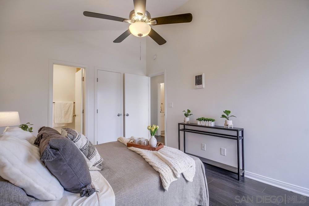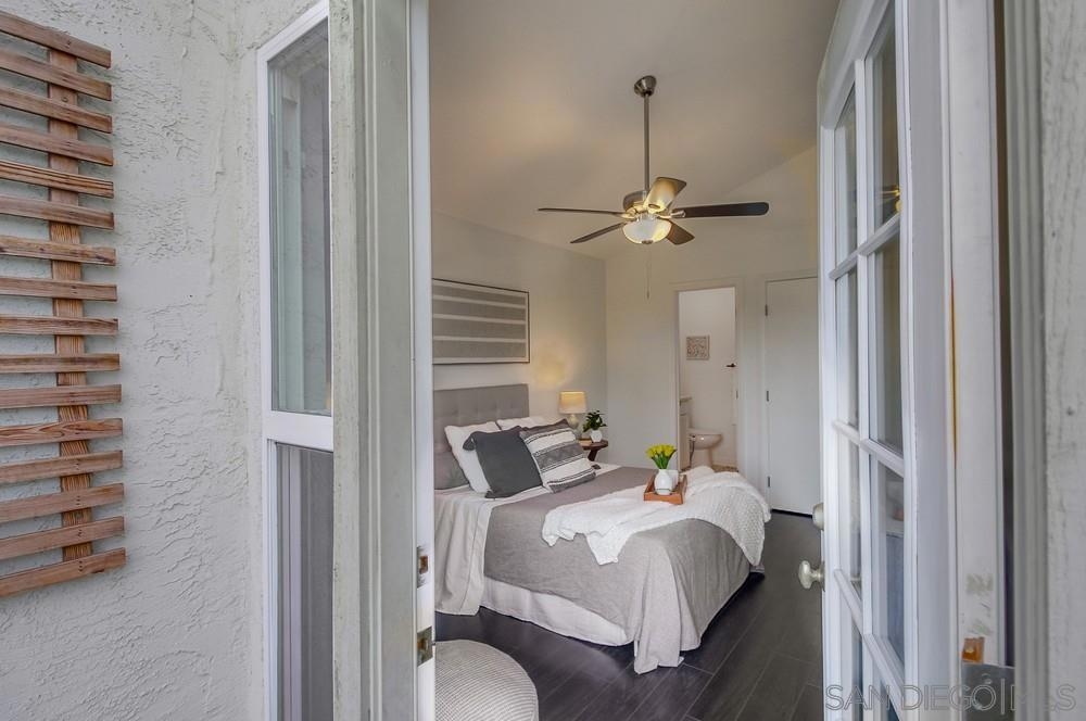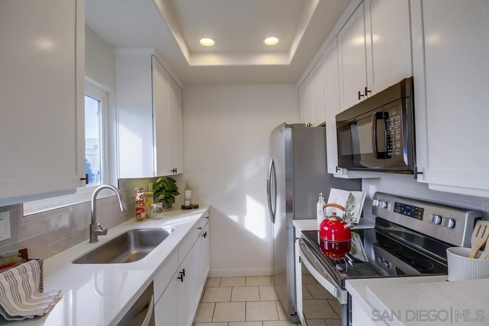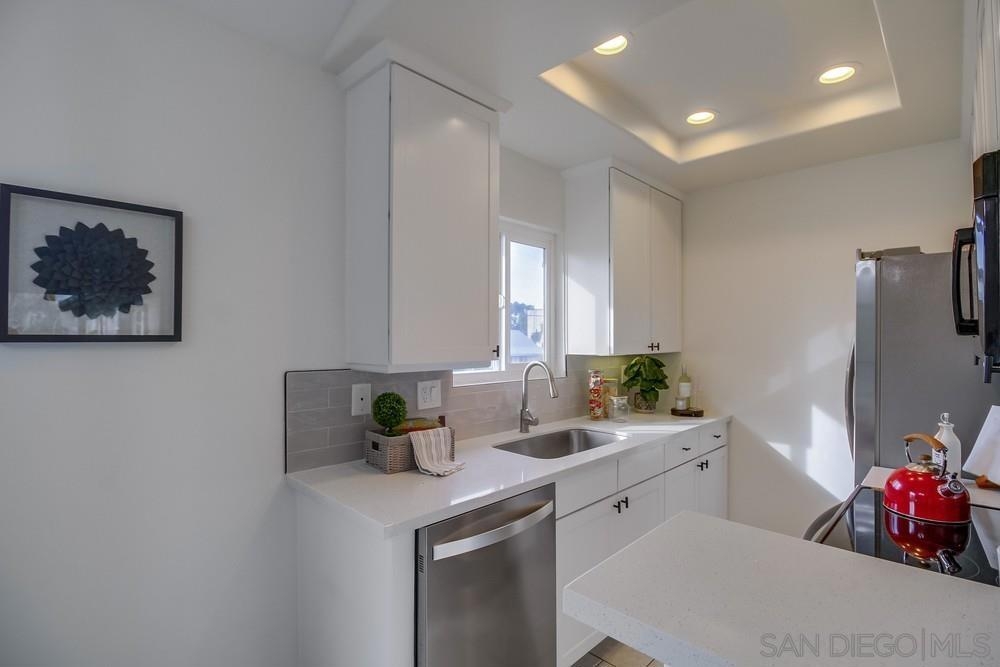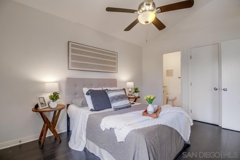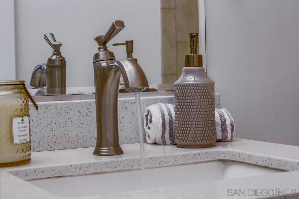 GORGEOUS RENOVATED 2bd/2ba condo in walkable Normal Heights! Newly painted with Walnut LVP floors and pitched ceilings throughout. STUNNING kitchen with quartz counters, new Artisan Mist tile backsplash, single basin sink with pulldown faucet, new matte black t-bar knobs, stainless steel appliances, and recessed lighting. New farmhouse chandelier at dining area and new bohemian tile surround at fireplace. Primary bedroom with new door, dual closets, balcony. Enjoy new weathered tan vanities with quartz... counters in both bathrooms and a tiled shower in the en suite primary bathroom. Ceiling fans in both bedrooms, new window screens, and new window at dining area. 2 assigned tandem parking spots. Unbeatable location on a quiet street within a short walking distance of coffee shops, eateries, bars, theatre and more!