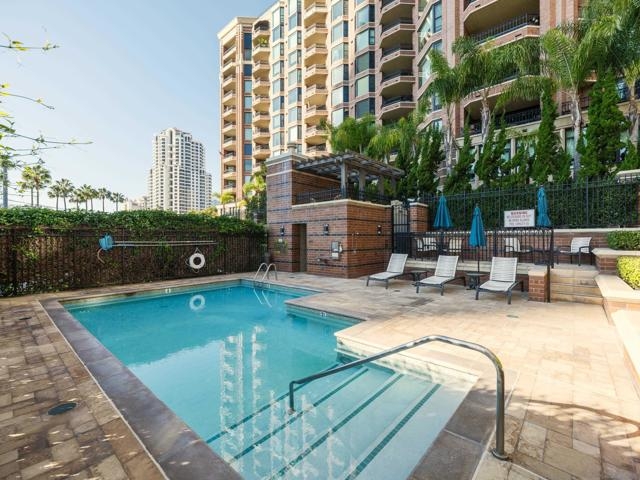 Discover elevated urban living at CityFront Terrace from this 2 BR, 2 BA residence in downtown San Diego’s sought-after Marina District. This beautifully updated residence offers peek bay views of the Coronado Bridge, and the city skyline, with a spacious balcony overlooking the community’s lush Urban Canyon gardens. Inside, the open layout blends style and function with a modernized kitchen featuring quartz countertops, stainless appliances, designer backsplash, and custom lighting. The primary suite offers a calm retreat with mirrored closet and a remodeled bath with deep jetted bath & dual quartz vanity. A versatile second bedroom includes a built-in Murphy bed and desk system, ideal for guests or a home office. Home comes with one large parking spot. CityFront Terrace is legendary in downtown San Diego for its high-end service and amenities with valet parking, 24 hour security/door service, 3,500 sq ft fitness center, two heated pools, clubroom, concierge services, and more! With the waterfront, Seaport Village, the Rady Shell, Little Italy, and the new Research and Development Districts just outside your door, this is downtown living at its best. Discover elevated urban living at CityFront Terrace from this 2 BR, 2 BA residence in downtown San Diego’s sought-after Marina District. This beautifully updated residence offers peek bay views of the Coronado Bridge, and the city skyline, with a spacious balcony overlooking the community’s lush Urban Canyon gardens. Inside, the open layout blends style and function with a modernized kitchen featuring quartz countertops, stainless appliances, designer backsplash, and custom lighting. The primary suite offers a calm retreat with mirrored closet and a remodeled bath with deep jetted bath & dual quartz vanity. A versatile second bedroom includes a built-in Murphy bed and desk system, ideal for guests or a home office. Home comes with one large parking spot. CityFront Terrace is legendary in downtown San Diego for its high-end service and amenities with valet parking, 24 hour security/door service, 3,500 sq ft fitness center, two heated pools, clubroom, concierge services, and more! With the waterfront, Seaport Village, the Rady Shell, Little Italy, and the new Research and Development Districts just outside your door, this is downtown living at its best.
