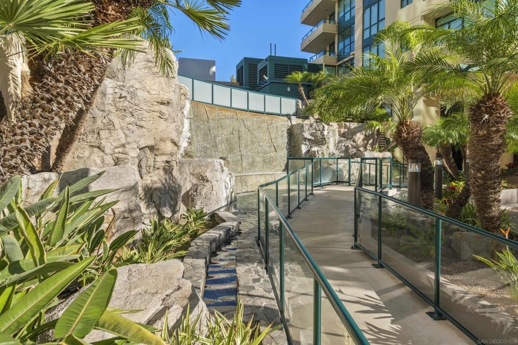 RARE large private terrace in the Marina District is ideal for outdoor dining, entertaining, lounging, gardening and more. This 2Bed, 2Bath spacious home features an open floor plan, beautiful wood flooring and abundant natural light overlooking the coveted Children's Park. Horizons is a premier downtown community known for its resort-style amenities and unbeatable walkable location- steps to Bay, Petco Park, Seaport Village, Little Italy, Rady Shell, dining, shopping, and entertainment. Included amenities- 24-hour security, concierge service, 17 guest parking spots, private storage locker, assigned parking and bike storage. Horizons offers luxury urban living with controlled access, on-site management, security, fitness center, pool/spa, game room, conference room, lounge areas, and a beautifully landscaped entry circle. HOA fees also cover common-area maintenance, exterior upkeep, security, building insurance, water, gas, trash, 17 guest spots (first come first serve). Exceptional proximity to grocery store, restaurants, bayfront paths, and transit.