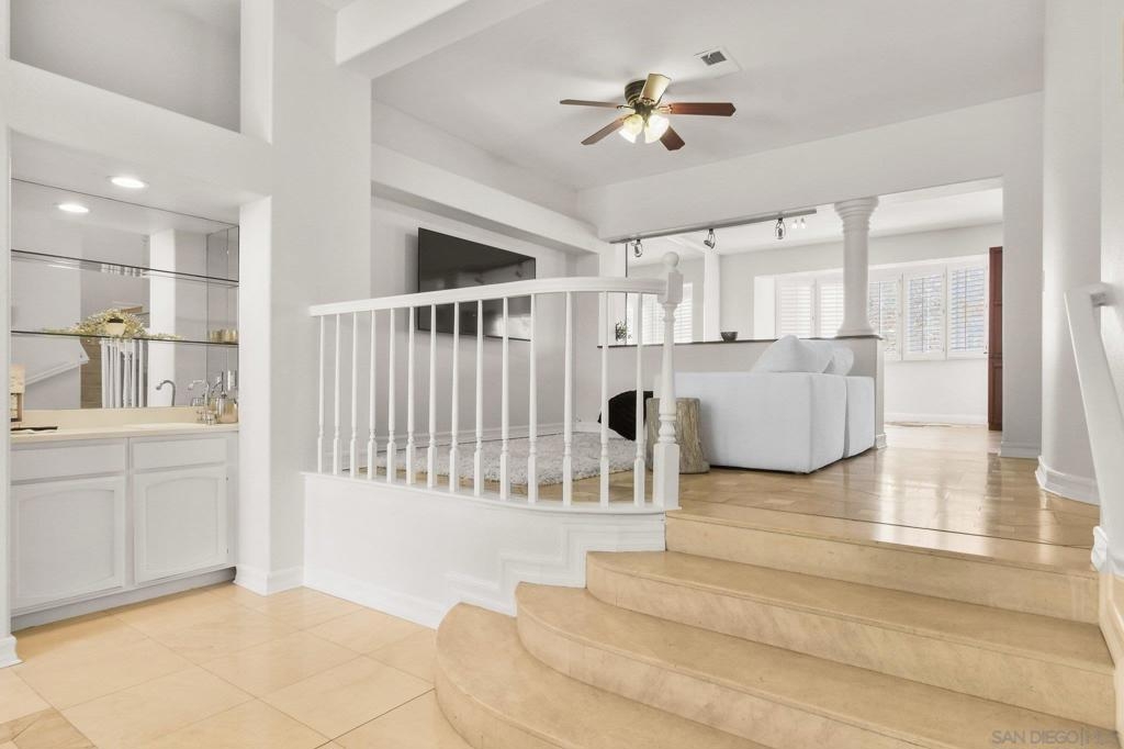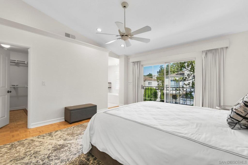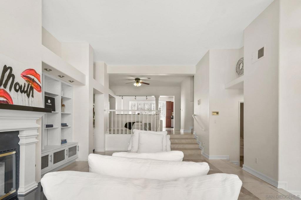 Located in the gated La Florentine enclave at Renaissance. Framed by lush trees and mature landscaping, a peaceful, garden-like approach leads to a welcoming front patio. This elegant townhome offers a serene setting within a beautifully maintained, Italian-inspired community with pool and resort-style amenities. Just moments from premier shopping, dining, and easy access to I-5 & I-52. The home features an airy, open layout with high ceilings and abundant natural sunlight, creating a bright and inviting atmosphere throughout. Travertine, tile and hardwood flooring as well window shutters add timeless appeal and warmth, while the fireplace anchors the Living Space.The kitchen opens to the formal dining area and includes granite countertops, ample cabinetry, and quality appliances, ideal for everyday living and entertaining. Enjoy three private balconies, including one off the primary suite, which also features two large walk-in closets and a well-appointed bath with tiled dual vanities and a separate tiled shower. Additional highlights include a full wall of custom built-ins in the garage. Framed by lush trees and mature landscaping, a peaceful, garden-like approach leads to a welcoming front patio, perfect for morning coffee or evening relaxation. Three private balconies throughout the home offer additional spaces to enjoy the surrounding setting.