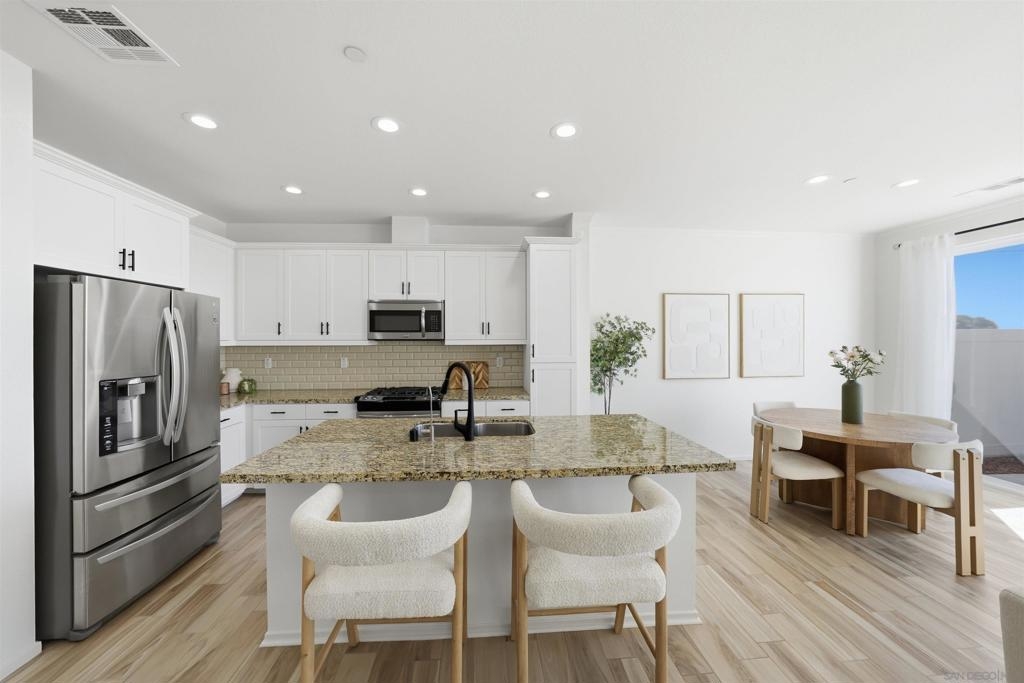 Built in 2016, this beautifully designed 3-bedroom, 2.5-bath residence offers 1,686 square feet of modern sophistication and effortless comfort. The open-concept layout is filled with natural light, seamlessly connecting the living, dining, and kitchen areas perfect for both elevated entertaining and everyday living. A versatile flex space provides the ideal setting for a home office, media room, fitness area, or creative studio. Upstairs, spacious bedrooms offer privacy and comfort, complemented by contemporary bathrooms with refined finishes. Residents enjoy resort style community amenities including a sparkling pool, relaxing spa, BBQ areas, and beautifully maintained parks. Ideally located near major freeways, shopping, dining, and entertainment, this home delivers the perfect blend of luxury, convenience, and lifestyle.