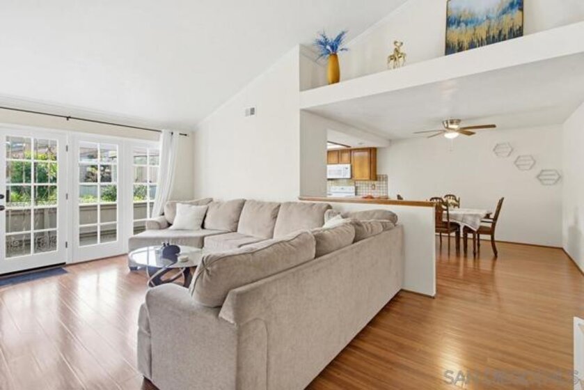 Lovely single-level 3BR/2BA townhome in the highly sought after Smoke Tree community. This well maintained home lives like a detached residence with a private 2-car garage and two spacious patios ideal for entertaining, gardening, or relaxing. Vaulted ceilings create a bright, open feel throughout the main living areas. The large rear patio is conveniently accessible from both the kitchen and living room, perfect for indoor-outdoor living. The spacious primary suite features a versatile nook for an office or reading area. This pride-of-ownership home offers the comfort of single-level living combined with the privacy and flexibility rarely found in townhome communities. The thoughtful floor plan provides natural light, soaring ceilings, and seamless flow between indoor and outdoor spaces. Both private patios offer tranquil outdoor retreats - one perfectly suited for entertaining and barbeques, the other ideal for a peaceful morning coffee surrounded by greenery and mountain views. A dedicated gardening area adds charm and personalization. The Smoke Tree community in known for its serene, well-maintained grounds and resort-style pool and spa, all while being centrally located in San Diego with convenient access to hiking, SDSU, shopping, dining, and major freeways.
