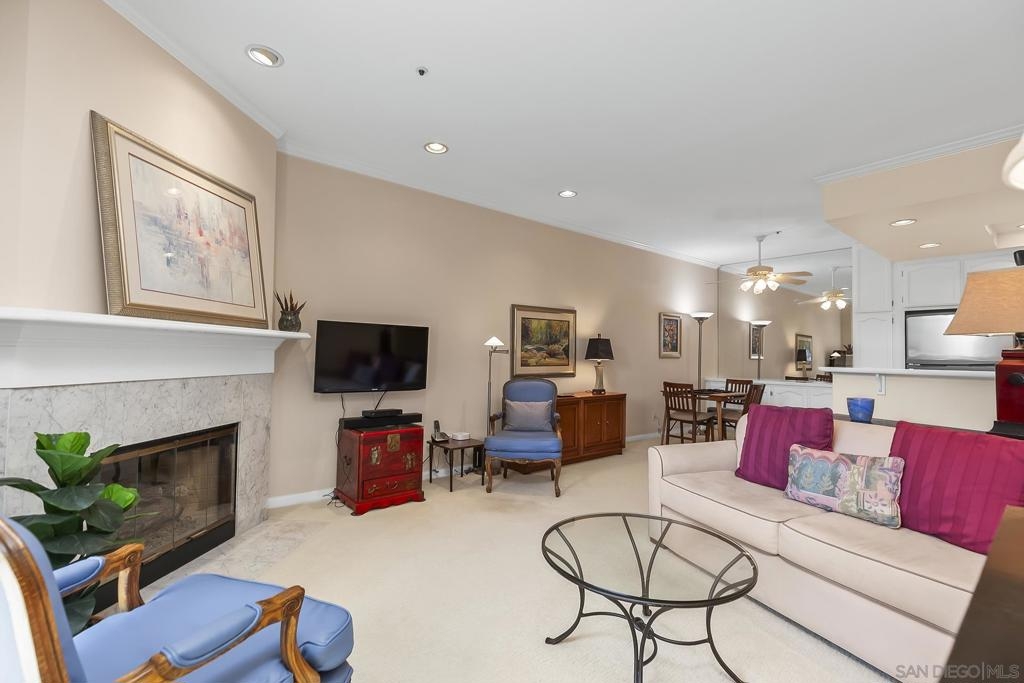 Beautifully Appointed, Immaculate Top Floor Residence at The Courtyards! Peaceful Treetop Views from this West Facing 2 Bed/2 Bath Condo with Private Balcony, 9ft Ceilings, Gas Fireplace, Central Heat & A/C, Recessed Lighting & Updated Kitchen with Quartz Countertops! Spacious Primary Suite with Over-sized Tiled Shower & Walk-in Closet with Custom Organizers. Secondary Bedroom has Built-in Murphy Bed & Custom Closet. Hunter Douglas Silhouette Window Coverings, In-Unit Washer/Dryer & 2 Premium Side-by-Side Parking Spaces. Highly Sought Guard/Gated Complex with Resort-like Amenities including Pools, Tennis Courts, Saunas, Gym & Clubhouse!