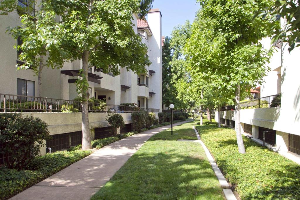 Gorgeous property in the desirable The Courtyards of Mission Valley. Located on the third floor with elevator access, this light-filled home offers spacious 1,228 sq ft of stylish living space with upgraded features throughout. Enjoy modern gray-toned flooring and walls, crown molding, and updated baseboards that add a refined touch. The spacious kitchen boasts stone countertops, custom white cabinetry, stainless steel appliances, and a cozy breakfast nook. The large primary suite offers three mirrored closets and a stunning en-suite bath with luxury vinyl plank flooring, new cabinetry, stone countertops, upgraded lighting, and a custom-tiled shower. The second bath has been remodeled to match in elegance and style. Inside laundry with stackable Miele laundry unit that conveys. Community amenities include secure underground parking, a sparkling pool and spa, tennis courts, a fitness center, clubhouse, and beautifully maintained grounds. Ideally located just a mile from Fashion Valley Mall with premier shopping, dining, and easy freeway access—this home combines comfort, convenience, and resort-style living.
