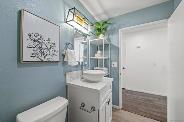 Stunning, Upgraded Mission Valley Townhome – Move-In Ready! Welcome to this beautifully remodeled Mission Valley townhome, where modern style meets everyday comfort. The updated kitchen boasts elegant finishes, granite countertops, a deep stainless-steel sink with a pull-down faucet, and newer dual-pane windows and a sliding door. Throughout the home, enjoy LED lighting with Wi-Fi connectivity, new laminate flooring, new appliances, and fresh interior paint. Enjoy your own private, gated patio surrounded by lush greenery — the perfect spot for morning coffee or relaxing after a long day. With no neighbors above or below, this home offers an exceptional sense of privacy and comfort. The well-maintained community - amenities, including pool, spa, and clubhouse. Water and trash are conveniently included in the HOA dues for easy living. Ideally situated near all that Mission Valley has to offer — including Costco, IKEA, Snapdragon Stadium, the trolley line, and top-rated dining and shopping — plus quick access to freeways 8 and 15. Don’t miss the opportunity to call this stylish townhome your new home!