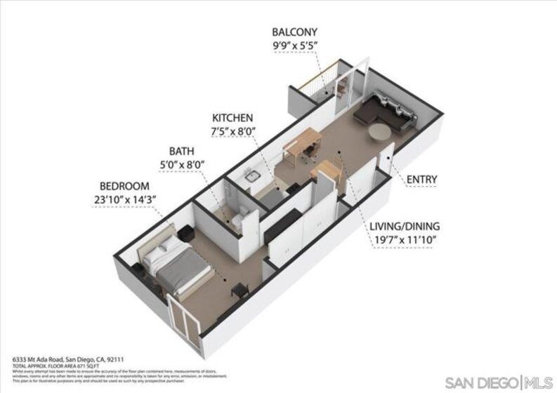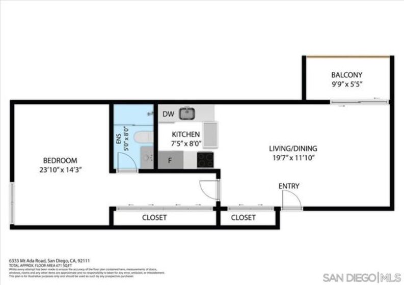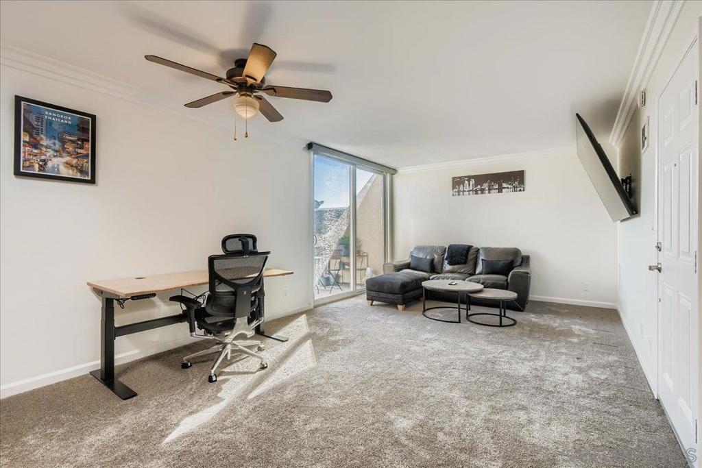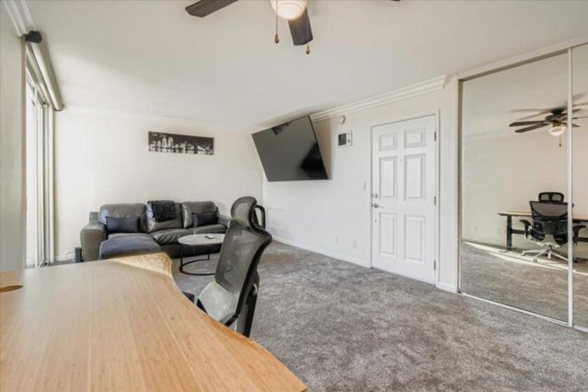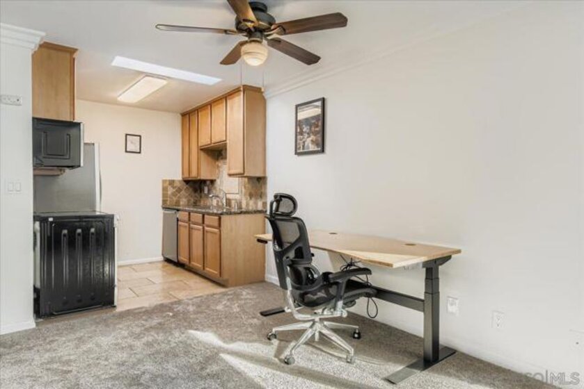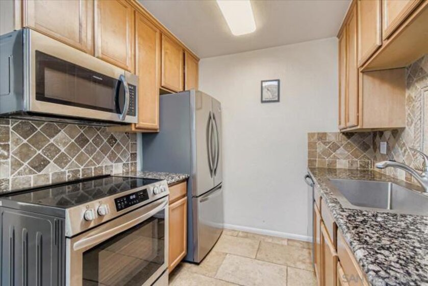 Welcome to Blossom Walk in the heart of Clairemont. Located on on the top floor, this bright 1 bed, 1 bath condo features an open, airy layout and a private balcony. The galley kitchen is highlighted by granite countertops, stainless steel appliances, and abundant natural light. Enjoy peace of mind with approximately $30,000 in recent improvements, including a tub to shower conversion, motorized vertical blinds in both the living room and bedroom, a new electrical panel, and plush new carpet with a premium 1/2" thick cushion pad. This gated community offers desirable amenities such as a pool, fitness center, and community laundry. Ideally located near shopping, dining, schools, and major freeways, with the beach just minutes away. VA approved.
