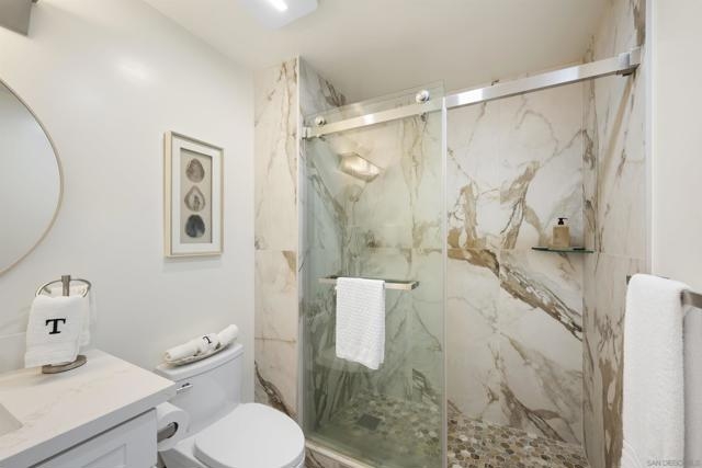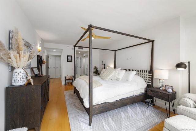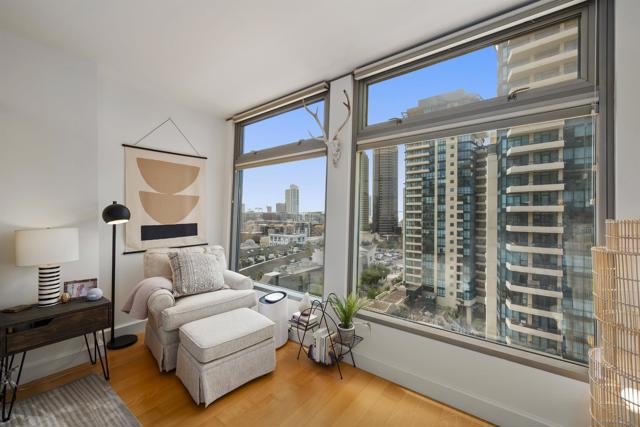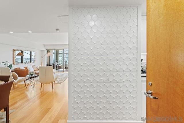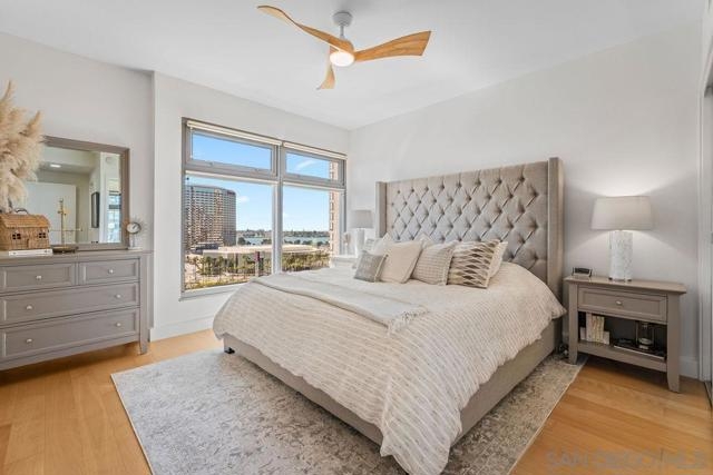 Experience elevated urban luxury in the heart of Downtown San Diego’s prestigious Marina District. This impeccably remodeled 3-bedroom, 3-bath residence is a rare find in the South Tower of Renaissance. Perched on the 12th floor, the home offers water views and abundant natural light through floor-to-ceiling windows, creating a seamless connection between vibrant city living and refined comfort. Completely reimagined kitchen, with rare natural granite, a Bosch paneled dishwasher, Sub-Zero paneled refrigerator, Hestan professional power range, and a custom bar area with Perlick double-drawer fridge and wine fridge. Additional highlights include maple hardwood floors throughout, a Samsung Frame TV with surround sound, and maple LVP flooring on the exterior deck. The Primary Suite impresses with a fully renovated spa-inspired bath featuring a freestanding tub, expanded walk-in shower, new cabinetry, and designer fixtures. The Junior Suite and third bath have also been transformed with custom showers in place of tubs, stylish new vanities, premium fixtures, and striking 24x48 porcelain slab tile. Practical luxury completes the home with two prime parking spaces (one extra-wide, one wide both with easy access) and a large storage locker with bonus storage, possibly the largest in the building. A Statement of Luxury in the Marina District. Perched high on the 12th floor of Renaissance’s coveted South Tower, this rare 3-bedroom, 3-bath masterpiece sets a new standard for downtown living. Walls of glass frame sweeping water views, flooding the home with natural light and blurring the line between cosmopolitan energy and private retreat. Completely reimagined kitchen with expanded counters draped in rare natural granite, a Bosch paneled dishwasher, Sub-Zero paneled refrigerator, and a Hestan professional power range. A custom bar with Perlick double-drawer fridge and wine fridge elevates every gathering. Maple hardwood floors lead you through spacious living areas designed for both entertaining and everyday elegance, enhanced by a Samsung Frame TV with surround sound and an exterior deck finished in maple LVP flooring. The Primary Suite is a spa-like sanctuary, boasting a freestanding soaking tub, expanded shower, custom cabinetry, and designer fixtures. The Junior Suite and third bath echo the same level of sophistication with sleek custom showers, new vanities, premium fixtures, and dramatic 24x48 porcelain slab tile. Every detail speaks of convenience and exclusivity: two prime parking spaces (one extra-wide, one wide—both with easy access) and a massive storage locker with bonus space, unmatched in the building. This is more than a home, it’s a statement!
