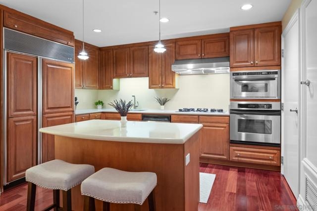 Elevated living the in the sub-penthouse at Renaissance with almost 4,000 SF of panoramic and unobstructed western and northern views. Flooded with natural light through walls of telescopic windows which slide all the way open, showcasing spectacular views of the bay, ocean and city to Point Loma, and past Coronado. This corner residence boasts 3 huge bedrooms plus an office surrounded by glass walls with the most stunning views ever, 2 stories, 4 balconies, 2 fire places, 2 side-by-side parking, and 2 storage units. Renaissance will soon have a brand new “street level” lobby and new resort style amenities as seen in the Virtual Tour. Upon entering the first level, you are welcomed by cathedral ceilings that enhance the light-filled, open layout. Gorgeous maple hardwood floors flow throughout the living area, complemented by telescopic windows that fully open, inviting the soothing ocean breeze inside. The family room, featuring eastern views, opens to the kitchen equipped with an island, an under counter wine cooler, ample storage, and a walk-in pantry. Enjoy three walk-out balconies on this level: two offering eastern views and one facing west for stunning sunsets. Two fireplaces enhance the ambiance: one in the living area on the first level and another in the primary bedroom suite. A large guest suite provides unobstructed panoramic water and city views, complete with custom shutters for adjustable light control and includes a walk-in closet and an ensuite bathroom with a multi-jet shower. A powder room convenient for your guests. Located on the second level, bedroom 2 features a spacious layout, a gigantic walk-in closet, and a walk-in shower with custom lighting. The expansive primary suite spans boasts nearly 900 square feet and includes crown molding throughout. The fireplace creates a cozy atmosphere, complemented by a comfortable sitting area by the window. Enjoy a luxurious Jacuzzi tub, dual sinks, and a multi-shower fixture in the primary ensuite catering to your every need. A large west-facing balcony off the primary bedroom offers beautiful sunset views while ensuring privacy. Adjacent to the primary suite is a large office with stunning north and west views through walls of glass, showcasing sparkling water and city lights, along with enhanced privacy. A spacious and private balcony directly off the primary suite offers uninterrupted water views, perfect for romantic evenings or enjoying a good book while watching boats, yachts, and the cityscape extending to the mountains.Two side-by-side parking spaces and two storage areas—one large cage and a temperature-controlled storage room for valuable items like artwork. Renaissance will soon have a brand new “street level” lobby and new resort style amenities including a large landscaped courtyard w/ BBQ aren, 3 fire pits w/ a dining area, pool/spa, gym, community lounge w/ full kitchen, conference room, surveillance throughout the community & 24/7 desk attendants. Ground floor retail conveniently includes Postal Annex for easy Amazon returns, Discount Nutrition & Vitality Juice, Rolling Out Bakery, Vases Salon, iTan and Wells Fargo. Located across from Ralph’s 24 hr. grocery w/ cafes on every corner, steps to the waterfront and Little Italy & just minutes to airport & public transportation and a ferry ride to Coronado. Welcome to paradise!