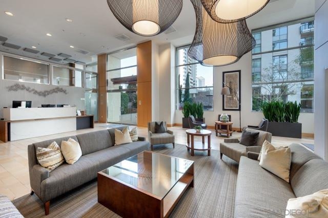 Don’t miss this one-of-a-kind, northwest corner floor plan in the south tower of Renaissance! Views are yours in every room; from sparkling city lights to the blue waters of the bay spanning beyond Point Loma! Beautifully upgraded, featuring a dual primary layout, fireplace in the living area, wood floors, and a generous amount of storage provided by the built-ins in nearly every room. The kitchen boasts granite counters, a large center island, high-end appliances by Sub-Zero and GE Monogram, plus an office space and breakfast area. The large primary suite offers its own private patio, a huge walk-in closet with a customizable system by Elfa and a fold down ironing board to boot. The en-suite bath features beautiful marble surrounds, a jetted spa tub, dual vanity, and separate walk-in shower. Guests will love the second bedroom which feels like its own private wing with en-suite bath and a spacious walk-in closet. This residence also includes a storage unit (level 1) and two separate parking spaces (level 2). The “refreshed” Renaissance common areas are sure to impress highlighting a new state of the art main lobby near completion! With staffed lobbies, 24/7 security, pool and spa, barbecues, seating areas, an outdoor fireplace and firepit, a well-equipped fitness center, and meeting room, the development has it all. Located in the highly desirable Marina District, street level at the Renaissance features, a myriad of retailers just an elevator ride away, including Wells Fargo, tanning salon, dry cleaners, Postal Annex, Vitality Tap for all your fresh juices & vitamins, and a soon to be coffee/sandwich shop. Enjoy easy walking access to train and trolley lines, excellent restaurants, shopping, and a Ralphs Signature Market across the street.