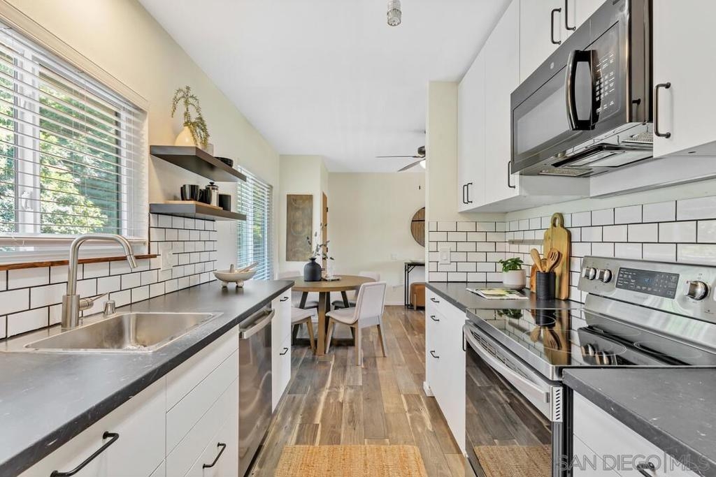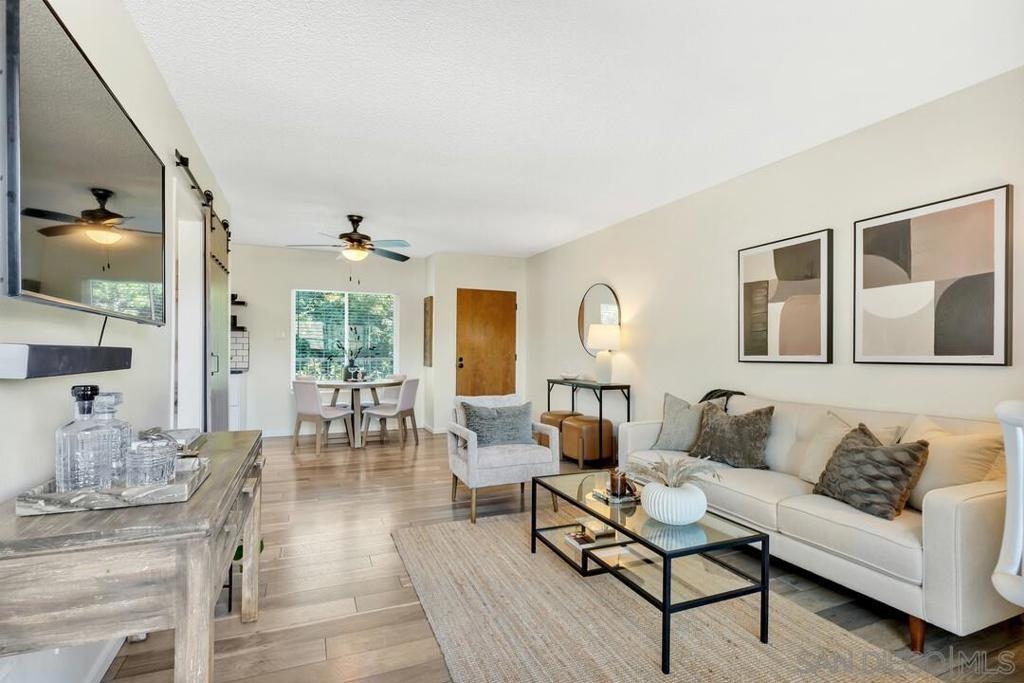 Situated on the top floor in the highly sought-after Allied Gardens/Del Cerro neighborhood, this exquisitely upgraded one bedroom, one bath residence offers an exceptional blend of style, comfort, and tranquility.. The thoughtfully renovated kitchen showcases sleek countertops, modern appliances, and refined finishes which open seamlessly into a bright and inviting living space featuring wood flooring throughout. Recent enhancements include fresh interior paint, new windows, and an updated sliding glass door. Step onto your private balcony to take in serene, panoramic views of the surrounding mountains and nearby golf course. Additional highlights include in-unit laundry, a ceiling fan for added comfort, and a dedicated parking space. Residents enjoy access to a well-maintained community featuring a pool and spa, while the exterior has recently undergone extensive upgrades, including refreshed balconies and stairwells, adding to the property’s overall appeal. Situated on the top floor in the highly sought-after Allied Gardens/Del Cerro neighborhood, this exquisitely upgraded one bedroom, one bath residence offers an exceptional blend of style, comfort, and tranquility.. The thoughtfully renovated kitchen showcases sleek countertops, modern appliances, and refined finishes which open seamlessly into a bright and inviting living space featuring wood flooring throughout. Recent enhancements include fresh interior paint, new windows, and an updated sliding glass door. Step onto your private balcony to take in serene, panoramic views of the surrounding mountains and nearby golf course. Additional highlights include in-unit laundry, a ceiling fan for added comfort, and a dedicated parking space. Residents enjoy access to a well-maintained community featuring a pool and spa, while the exterior has recently undergone extensive upgrades, including refreshed balconies and stairwells, adding to the property’s overall appeal.
