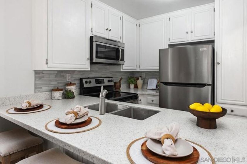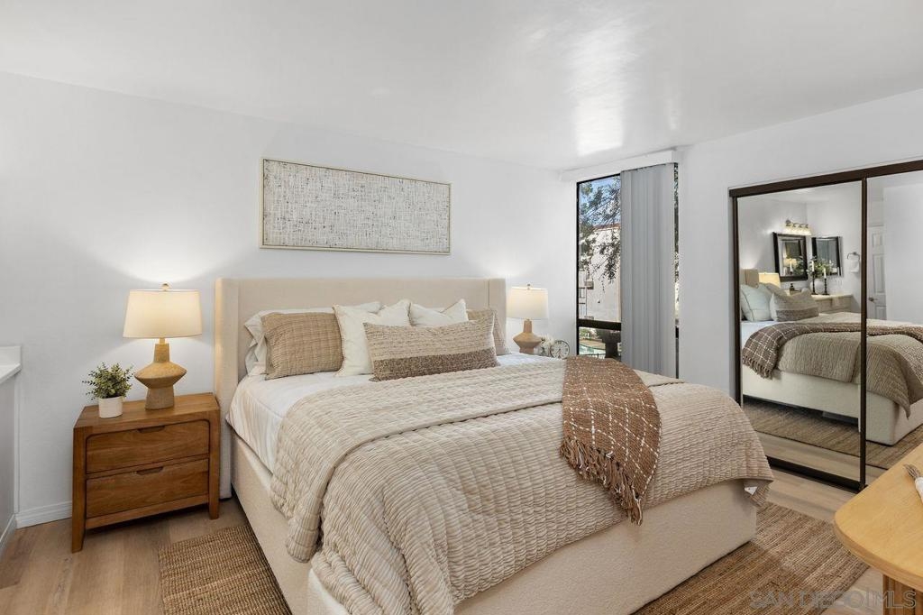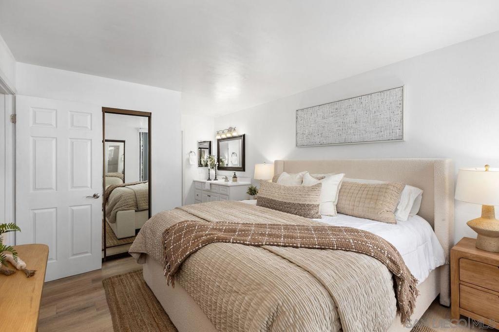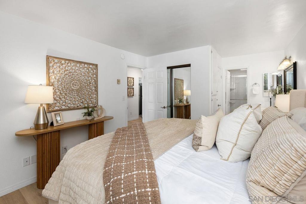 Welcome to the highly desirable community of Hyde Park Villas! Buyers, move right into a newly renovated end-unit home that boasts an abundance of natural light, with an open concept. This quiet, turn-key one bedroom/one bathroom home features high end design with new vinyl floors throughout, a beautiful updated kitchen, new applicances, with contemporary countertops & backsplash. The inviting, spacious primary bedroom offers two large closets, an updated ensuite bathroom, combining convenience with luxury. This unit includes a coveted garaged parking space, low HOA fees & numerous amenites. Hyde Park Villas is a private, gated community that offers amenities such as a sparkling pool, spa, fitness center, bbq area, clubhouse and the Canine corner, a fenced dog area for your pup. Ideally situated in San Carlos, located near Mission Trails Golf Course, Lake Murray Community Park, Cowles Mountain Trailhead, shopping, restaurants & major freeways. Hyde Park Villas is FHA and VA approved. Don't miss out on this incredible investment opportunity!