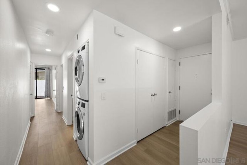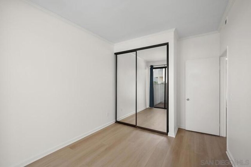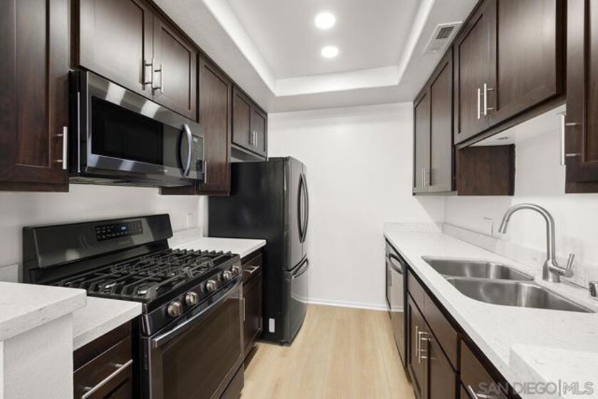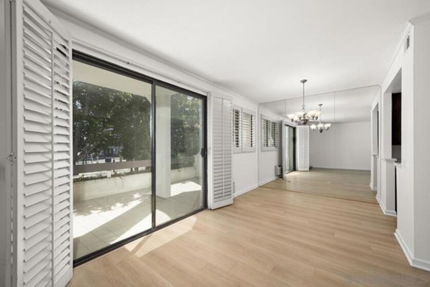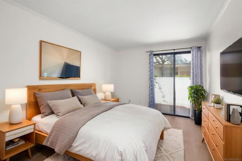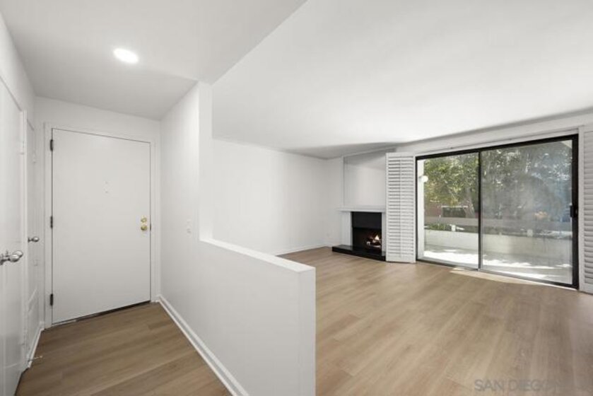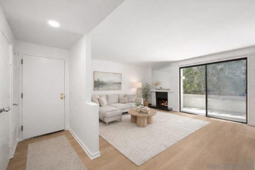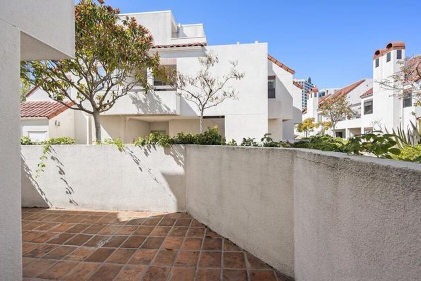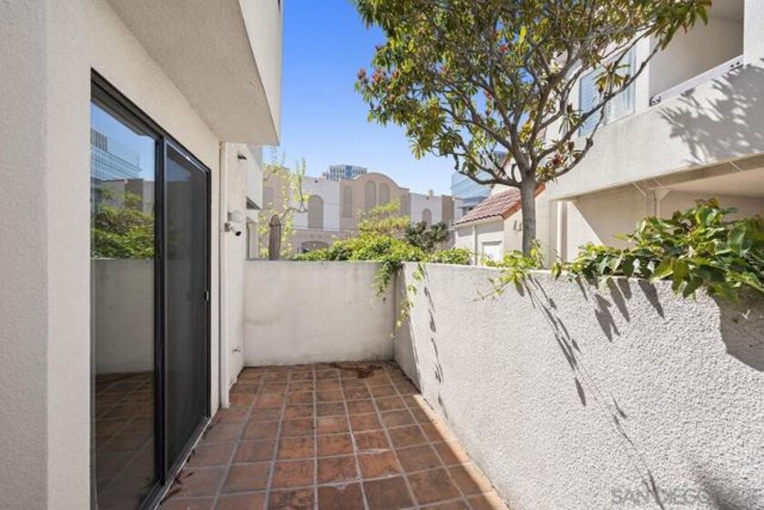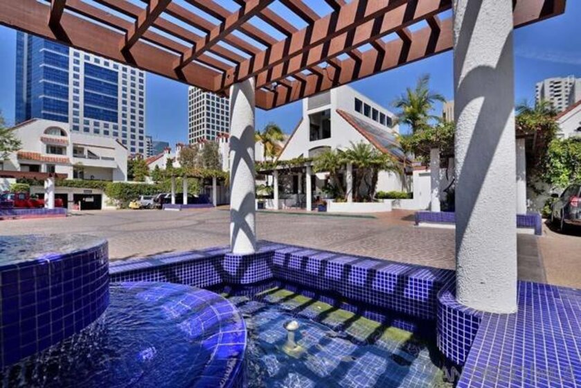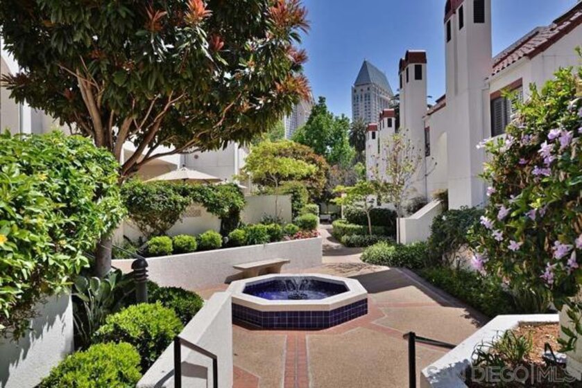 Welcome to this rare, single-level ground-floor residence with 2 bedrooms, 2 bathrooms AND 2 patios! With a bright and open layout and sunlight streaming in from every angle, it’s the kind of home that just feels good the moment you step inside. Enjoy the brand-new “Bentwood Tan” luxury vinyl plank flooring throughout, cozy ambient fireplace, and a “refreshed” kitchen with sleek quartz counter, top-notch Samsung appliances, refaced cabinetry and newer fixtures. The spacious primary suite offers dual closets and an ensuite bath with a step-in shower, while both bedrooms open directly to the patios—perfect for seamless indoor-outdoor living. Other features include LED lighting, a bonus storage closet on the patio, a secure parking space, private storage cabinet and fresh paint throughout. All this in Park Row, one of Downtown’s most charming low-rise communities, known for its lush landscaping, fantastic amenities, and unbeatable walkability. And yes—low HOA dues, too! There is no other development like Park Row in Downtown; beautiful garden-setting with sparkling fountains, a plethora of flowers, trees, real green grass and courtyards to boot. With no elevators, long corridors or hallways; rather “ease of access” walk-up style residences, it offers a serene escape for those seeking the charm of urban living without the high-rise hustle. Nestled beside the historic Pantoja Park, this tranquil community invites you to stroll to The Headquarters, Seaport Village, the Gaslamp Quarter, and the scenic waterfront, with Downtown San Diego's cultural highlights just steps away. Beautifully landscaped grounds enhance the peaceful ambiance, while amenities such as clubhouse, year-round heated pool, and spa create a relaxing retreat. Plentiful visitor parking is an added perk, and additional parking, storage options, bike storage, and an EV charging station are available through the HOA. Embrace the perfect balance of city convenience and peaceful living at Park Row—welcome home!