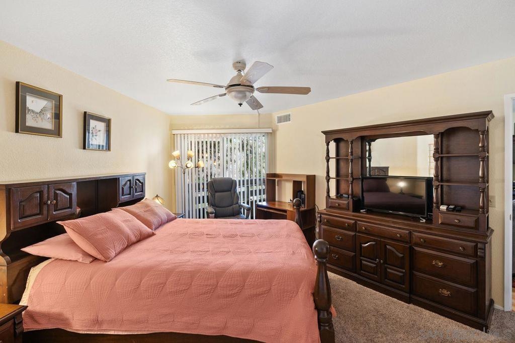 Charming Fashion Valley condo offering comfort, convenience, and RARE NO STAIRS ACCESS. Enjoy direct entry from the parking area with a tandem garage located just across the hall—an exceptional feature for easy everyday living. The thoughtful split-bedroom floor plan provides privacy, making it ideal for guests or roommates. The kitchen features beautiful cherry wood cabinetry extending to the ceiling, granite countertops, and ample storage. Bathrooms have been tastefully updated, including a spacious walk-in shower with seating and glass enclosure. Additional highlights include laminate and carpet flooring, indoor stackable laundry, a cozy fireplace, and a shaded private patio perfect for relaxation. Recent upgrades include a newer furnace, air conditioning, and water heater. The well-maintained community offers a heated saltwater pool and a fully equipped fitness center. Centrally located just minutes to Fashion Valley Mall, dining, beaches, and downtown San Diego. Optional purchase: Home may be sold fully furnished with linens, housewares, and décor—truly turnkey. Property Highlights Charming Fashion Valley condo designed for comfortable, low-maintenance living Rare no-stairs access with direct entry from the parking area — tandem garage located just across the hall Smart, well-designed floor plan with separate bedrooms and bathrooms, ideal for privacy, guests, or roommates Beautiful cherry wood kitchen cabinetry extending to the ceiling, complemented by granite countertops Updated bathrooms featuring a spacious walk-in shower with seating and glass enclosure Combination of laminate and carpet flooring throughout Convenient indoor stackable laundry Cozy fireplace and a shaded private patio, perfect for relaxing or enjoying morning coffee Recently updated furnace, air conditioning, and water heater Community amenities include a heated saltwater pool and a fully equipped fitness center Prime central location just minutes to Fashion Valley Mall, dining, beaches, and downtown San Diego Optional purchase: Home may be sold fully furnished with linens, housewares, and décor — a truly turnkey opportunity